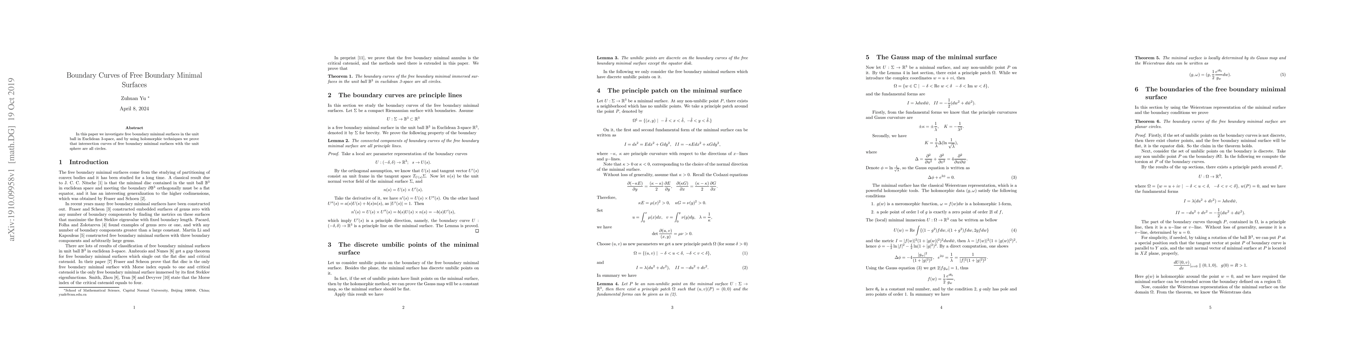 This paper explores free boundary minimal surfaces within the unit ball in 3D space and demonstrates through holomorphic methods that the intersection curves with the unit sphere are always circular.