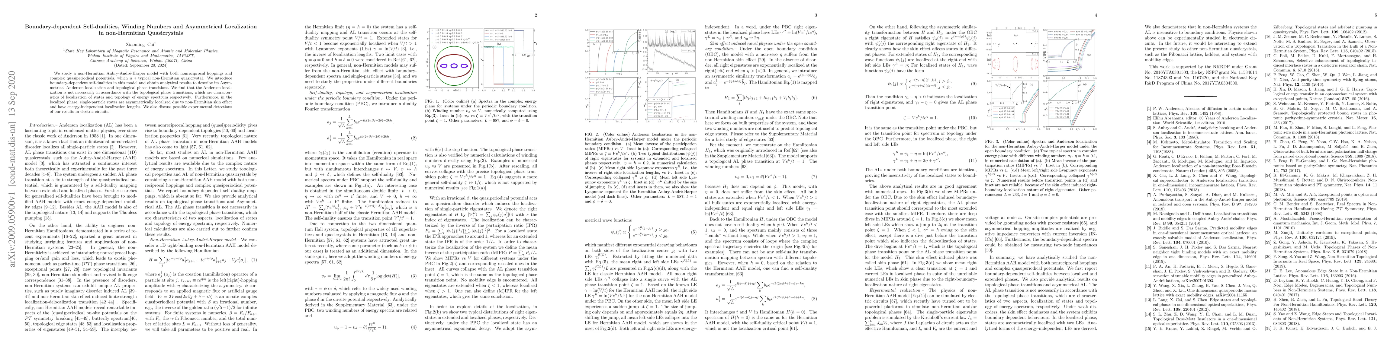 We study a non-Hermitian Aubry-Andr\'e-Harper model with both nonreciprocal hoppings and complex quasiperiodical potentials, which is a typical non-Hermitian quasicrystal. We introduce boundary-dependent self-dualities in this model and obtain analytical results to describe its Asymmetrical Anderson localization and topological phase transitions. We find that the Anderson localization is not necessarily in accordance with the topological phase transitions, which are characteristics of localization of states and topology of energy spectrum respectively. Furthermore, in the localized phase, single-particle states are asymmetrically localized due to non-Hermitian skin effect and have energy-independent localization lengths. We also discuss possible experimental detections of our results in electric circuits.