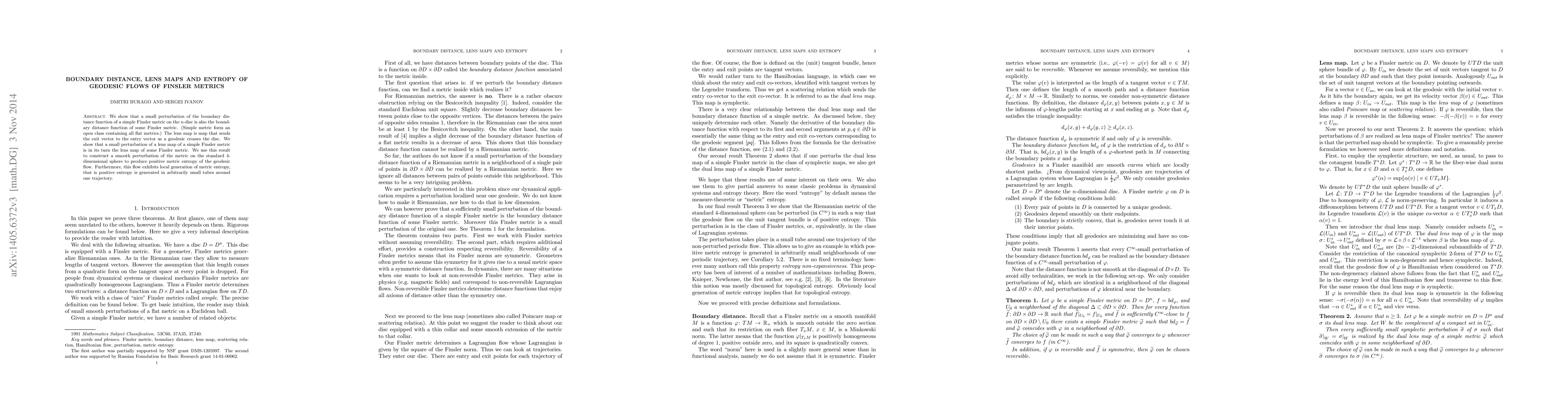 We show that a small perturbation of the boundary distance function of a simple Finsler metric on the $n$-disc is also the boundary distance function of some Finsler metric. (Simple metric form an open class containing all flat metrics.) The lens map is map that sends the exit vector to the entry vector as a geodesic crosses the disc. We show that a small perturbation of a lens map of a simple Finsler metric is in its turn the lens map of some Finsler metric. We use this result to construct a smooth perturbation of the metric on the standard 4-dimensional sphere to produce positive metric entropy of the geodesic flow. Furthermore, this flow exhibits local generation of metric entropy, that is positive entropy is generated in arbitrarily small tubes around one trajectory.