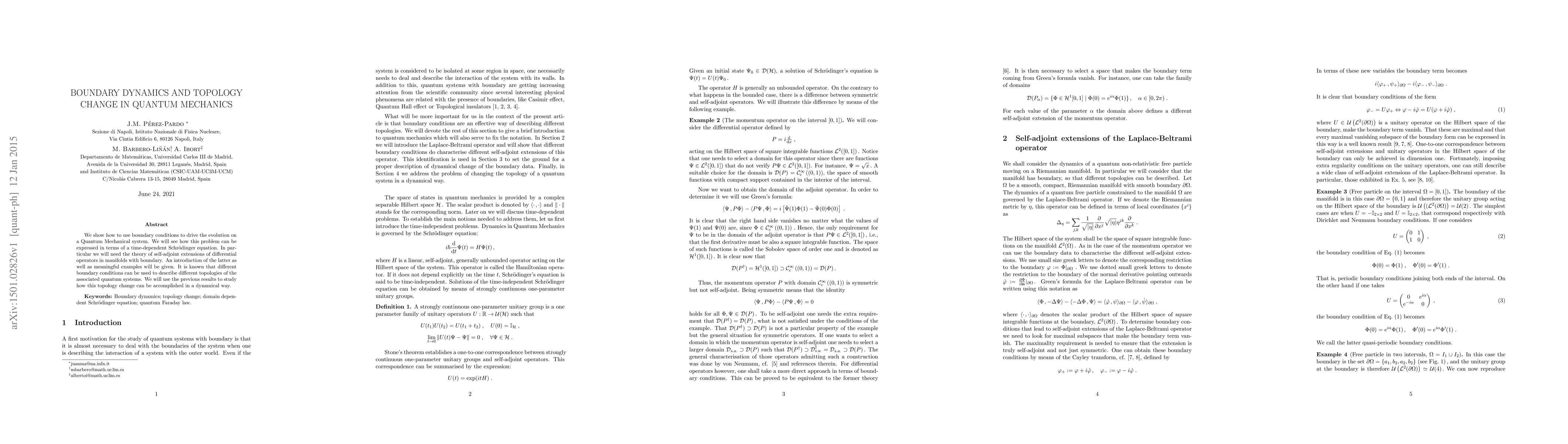 We show how to use boundary conditions to drive the evolution on a Quantum Mechanical system. We will see how this problem can be expressed in terms of a time-dependent Schr\"{o}dinger equation. In particular we will need the theory of self-adjoint extensions of differential operators in manifolds with boundary. An introduction of the latter as well as meaningful examples will be given. It is known that different boundary conditions can be used to describe different topologies of the associated quantum systems. We will use the previous results to study how this topology change can be accomplished in a dynamical way.