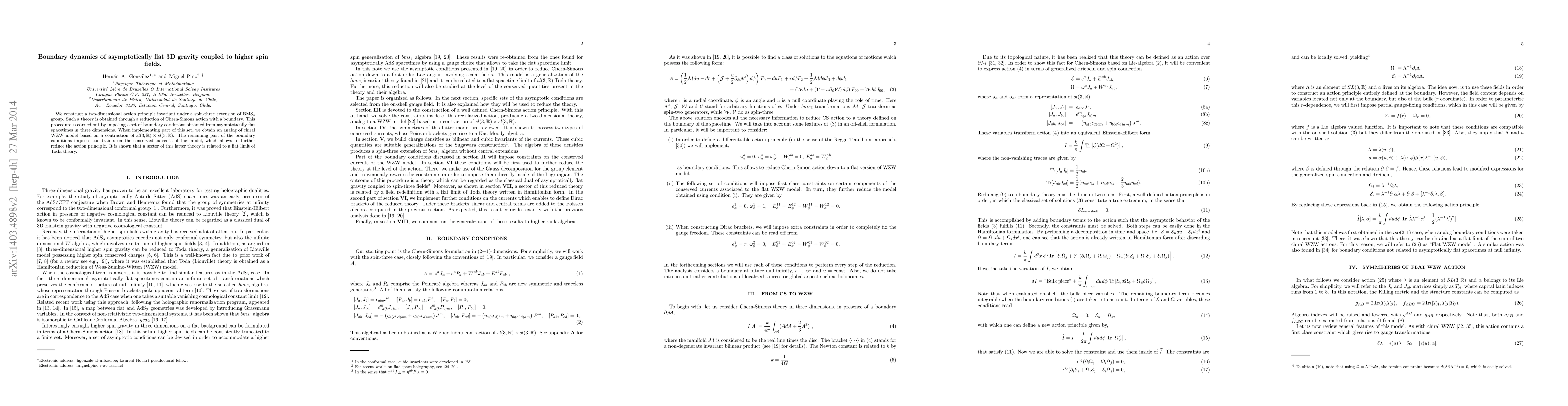We construct a two-dimensional action principle invariant under a spin-three extension of BMS$_3$ group. Such a theory is obtained through a reduction of Chern-Simons action with a boundary. This procedure is carried out by imposing a set of boundary conditions obtained from asymptotically flat spacetimes in three dimensions. When implementing part of this set, we obtain an analog of chiral WZW model based on a contraction of $sl(3,\mathbb{R}) \times sl(3,\mathbb{R})$. The remaining part of the boundary conditions imposes constraints on the conserved currents of the model, which allows to further reduce the action principle. It is shown that a sector of this latter theory is related to a flat limit of Toda theory.