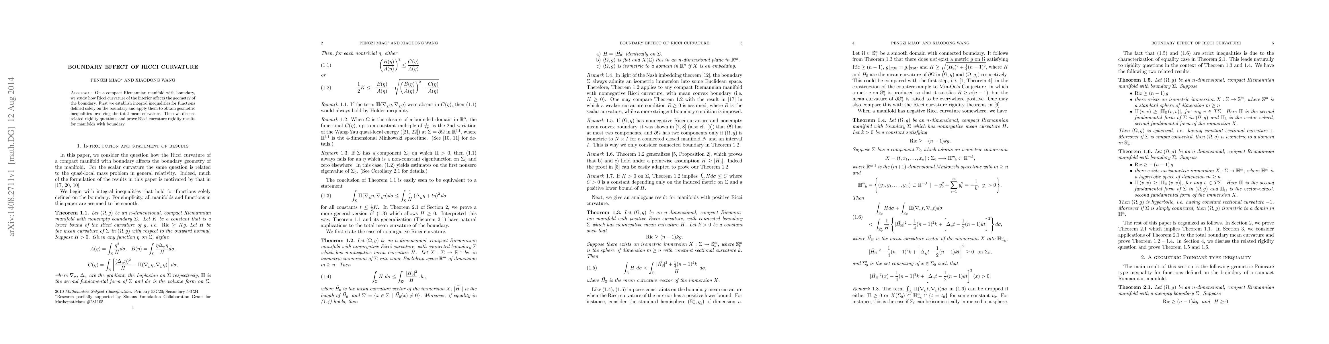 On a compact Riemannian manifold with boundary, we study how Ricci curvature of the interior affects the geometry of the boundary. First we establish integral inequalities for functions defined solely on the boundary and apply them to obtain geometric inequalities involving the total mean curvature. Then we discuss related rigidity questions and prove Ricci curvature rigidity results for manifolds with boundary.