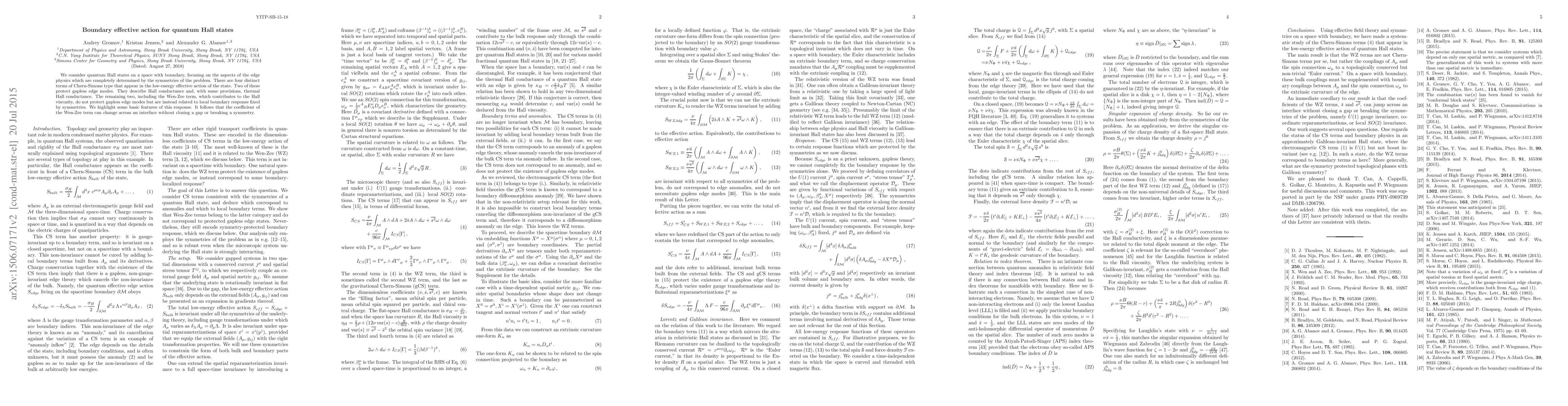 We consider quantum Hall states on a space with boundary, focusing on the aspects of the edge physics which are completely determined by the symmetries of the problem. There are four distinct terms of Chern-Simons type that appear in the low-energy effective action of the state. Two of these protect gapless edge modes. They describe Hall conductance and, with some provisions, thermal Hall conductance. The remaining two, including the Wen-Zee term, which contributes to the Hall viscosity, do not protect gapless edge modes but are instead related to local boundary response fixed by symmetries. We highlight some basic features of this response. It follows that the coefficient of the Wen-Zee term can change across an interface without closing a gap or breaking a symmetry.