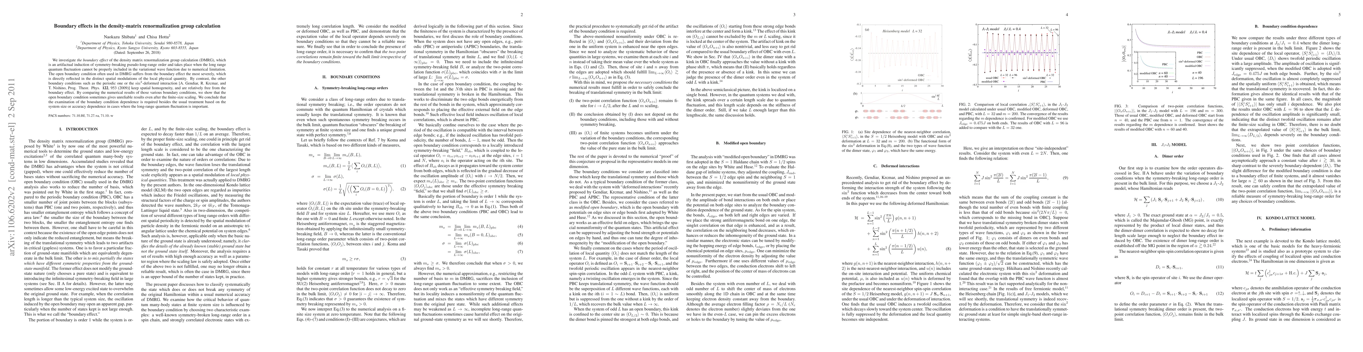 This paper examines the boundary effects in density matrix renormalization group (DMRG) calculations, highlighting how open boundary conditions induce symmetry-breaking pseudo-long-range order due to numerical limitations. It finds that alternative boundary conditions maintain spatial homogeneity better, suggesting the necessity of boundary condition dependence analysis in systems with significant long-range quantum fluctuations.