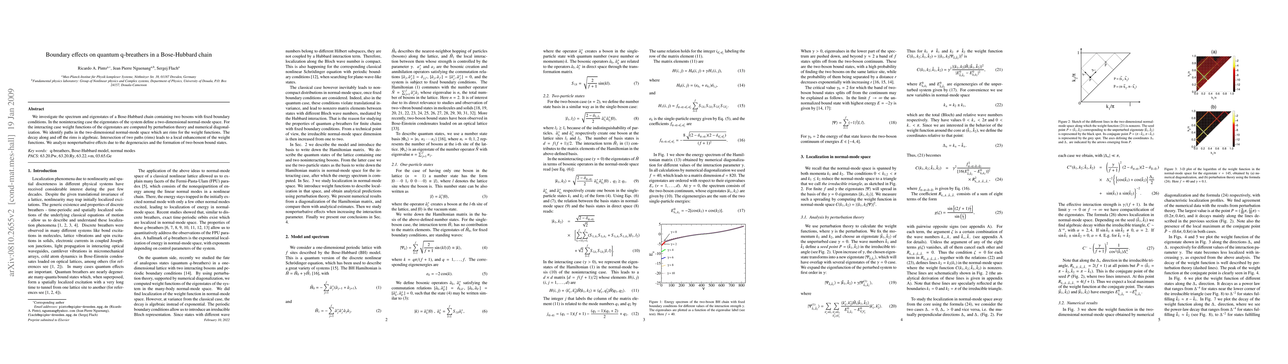 We investigate the spectrum and eigenstates of a Bose-Hubbard chain containing two bosons with fixed boundary conditions. In the noninteracting case the eigenstates of the system define a two-dimensional normal-mode space. For the interacting case weight functions of the eigenstates are computed by perturbation theory and numerical diagonalization. We identify paths in the two-dimensional normal-mode space which are rims for the weight functions. The decay along and off the rims is algebraic. Intersection of two paths (rims) leads to a local enhancement of the weight functions. We analyze nonperturbative effects due to the degeneracies and the formation of two-boson bound states.