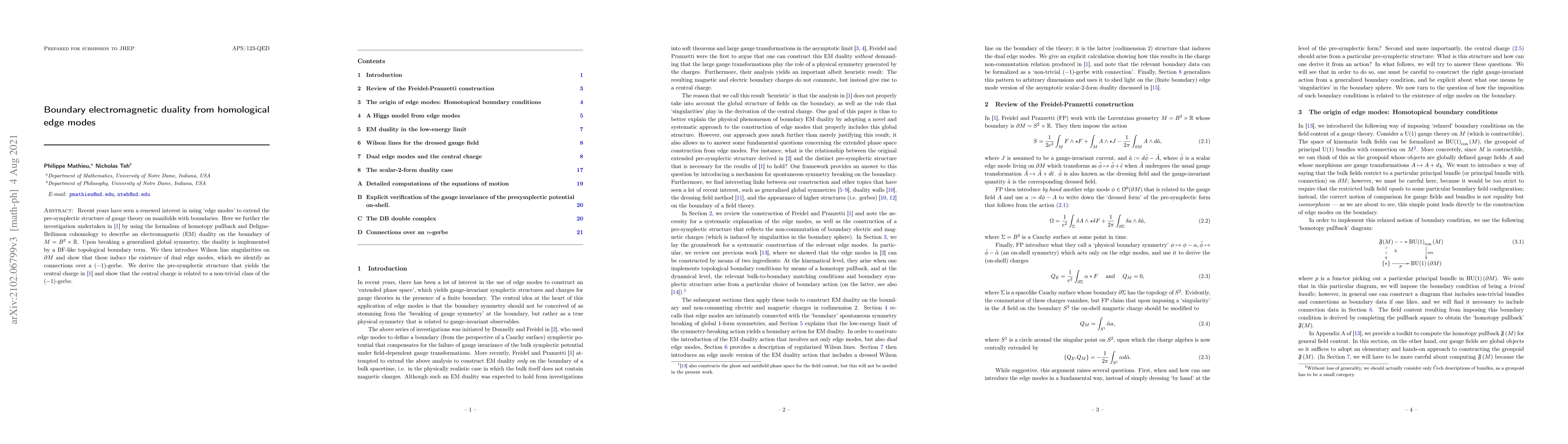 This paper extends the investigation of electromagnetic duality on the boundary of a manifold using homotopy pullback and Deligne-Beilinson cohomology, revealing a duality implemented by a BF-like topological boundary term and the existence of dual edge modes identified as connections over a $(-1)$-gerbe.