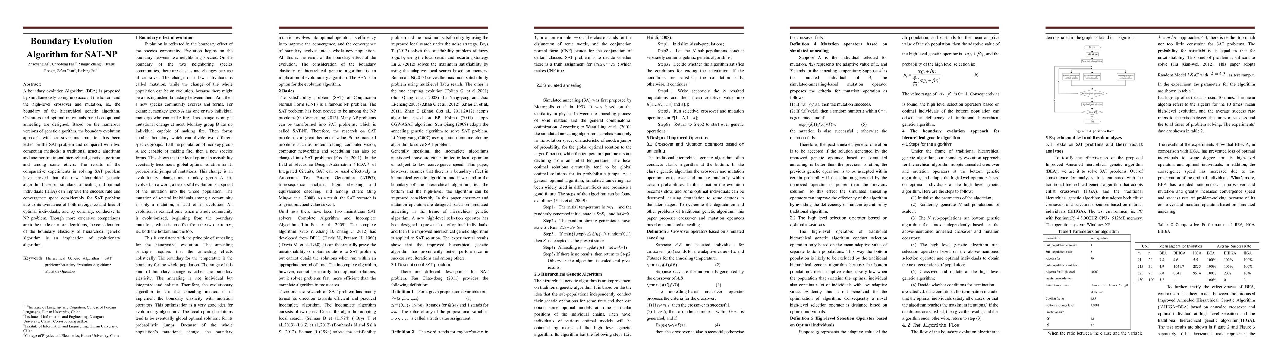 A new algorithm called Boundary Evolution Algorithm (BEA) for solving SAT problems improves success rate and convergence speed compared to traditional methods. It avoids divergence and loss of optimal individuals, making it a promising approach for NP problems.
