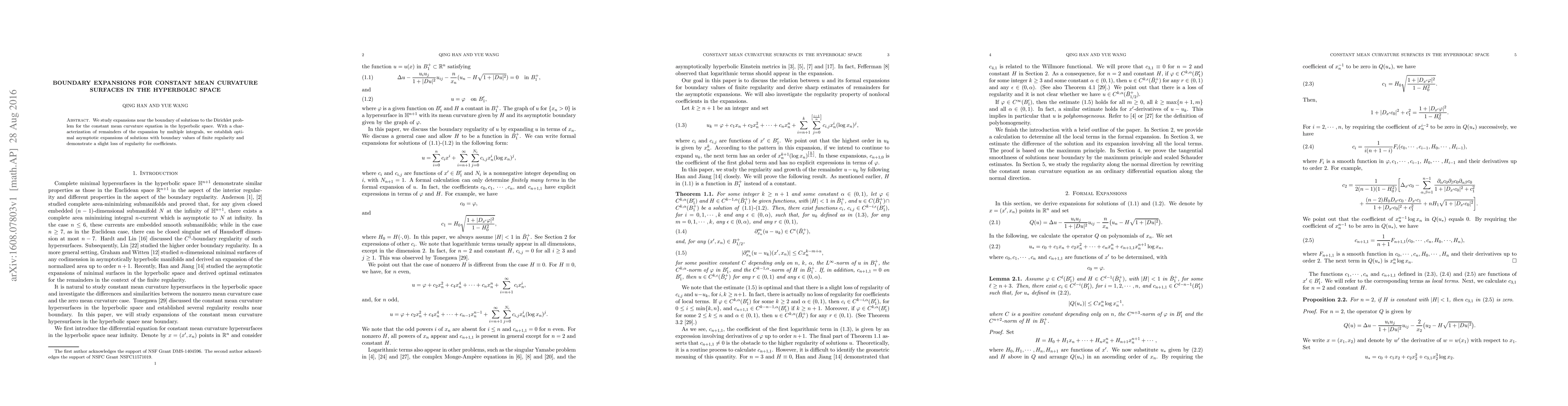 Summary: This paper investigates expansions near the boundary of constant mean curvature surfaces in hyperbolic space, providing optimal asymptotic expansions characterized by multiple integrals and noting a slight loss of regularity for the coefficients.