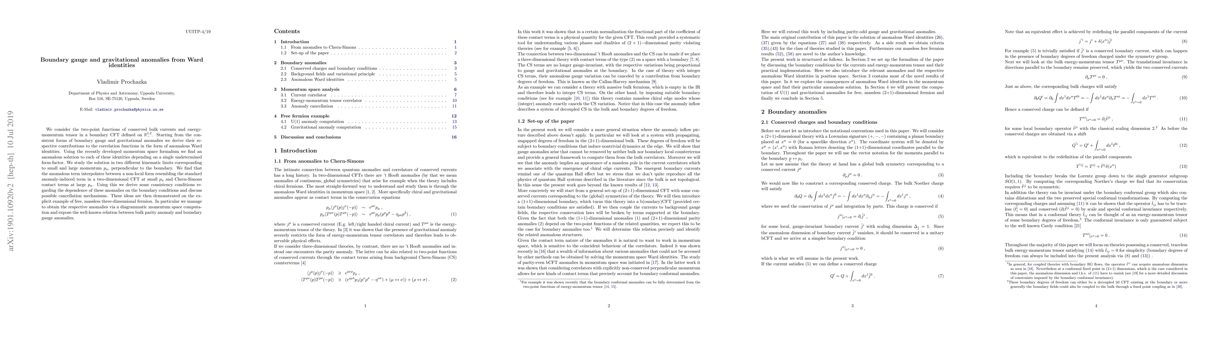 This paper derives anomalous Ward identities for boundary gauge and gravitational anomalies in a boundary CFT, finding an anomalous solution that interpolates between non-local and Chern-Simons forms. It demonstrates these ideas using a three-dimensional fermion example, revealing the connection between bulk parity anomaly and boundary gauge anomalies.