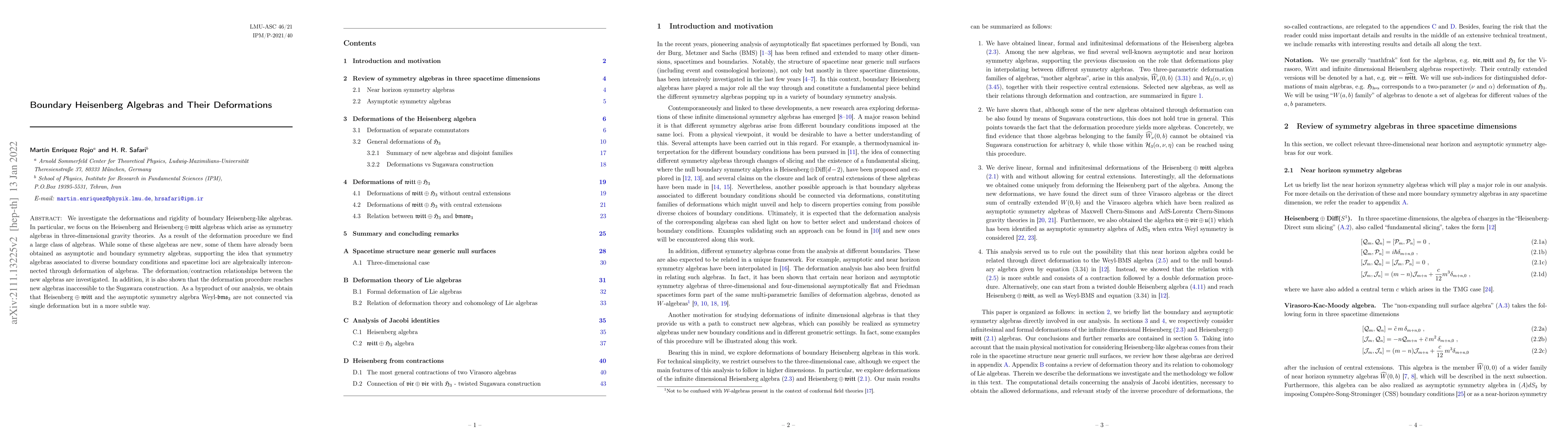 We investigate the deformations and rigidity of boundary Heisenberg-like algebras. In particular, we focus on the Heisenberg and $\text{Heisenberg}\oplus\mathfrak{witt}$ algebras which arise as symmetry algebras in three-dimensional gravity theories. As a result of the deformation procedure we find a large class of algebras. While some of these algebras are new, some of them have already been obtained as asymptotic and boundary symmetry algebras, supporting the idea that symmetry algebras associated to diverse boundary conditions and spacetime loci are algebraically interconnected through deformation of algebras. The deformation/contraction relationships between the new algebras are investigated. In addition, it is also shown that the deformation procedure reaches new algebras inaccessible to the Sugawara construction. As a byproduct of our analysis, we obtain that $\text{Heisenberg}\oplus\mathfrak{witt}$ and the asymptotic symmetry algebra Weyl-$\mathfrak{bms}_3$ are not connected via single deformation but in a more subtle way.