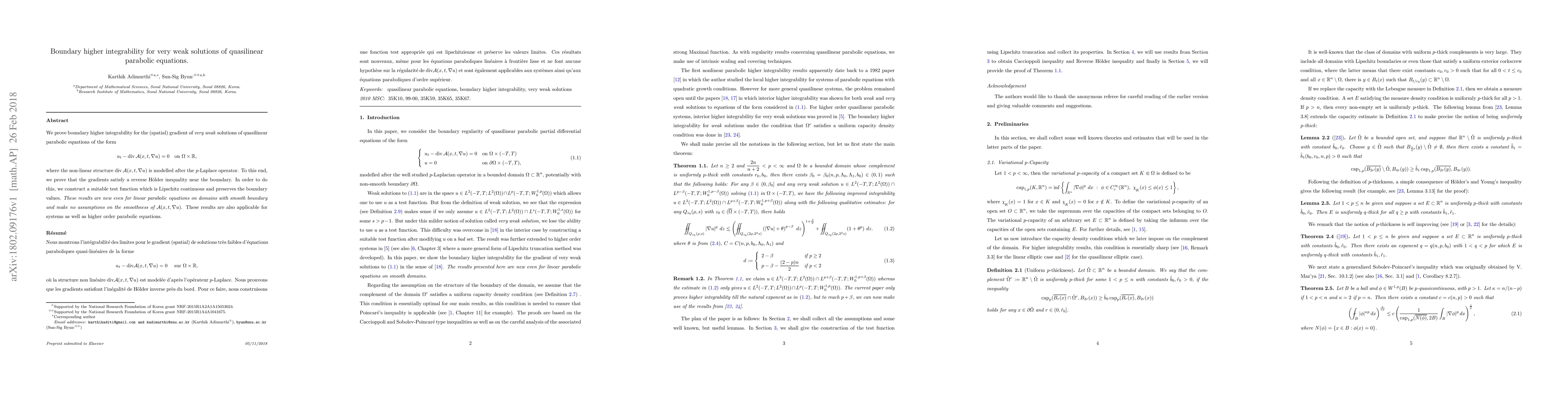 This paper proves that gradients of very weak solutions of quasilinear parabolic equations can have boundary higher integrability, a new result even for linear equations on domains with smooth boundaries.