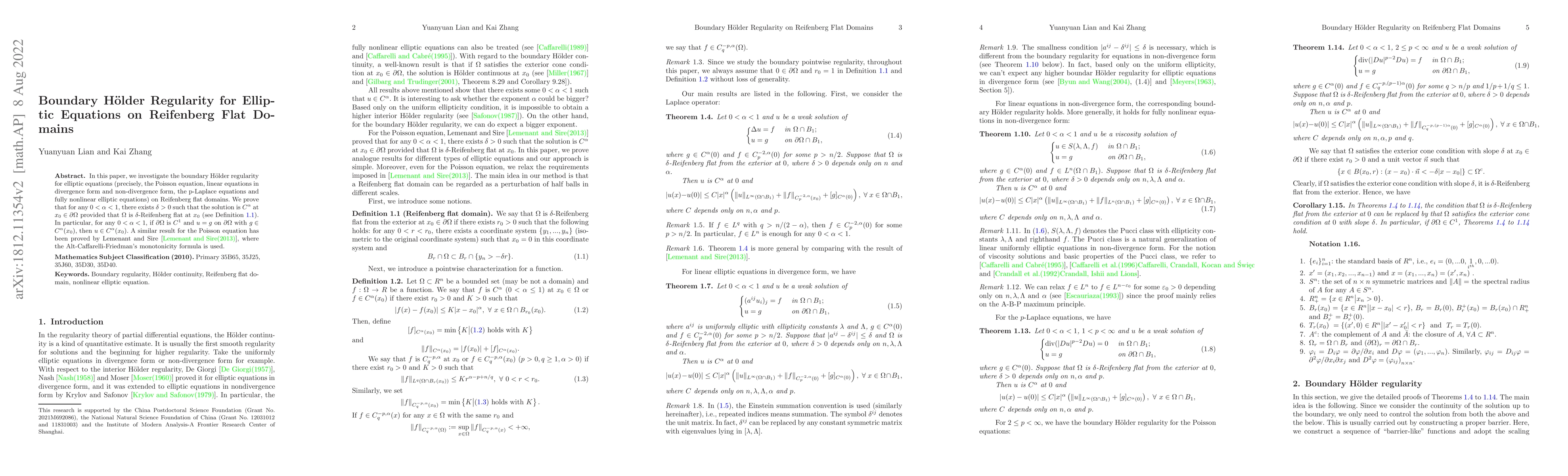 This paper proves boundary Hölder regularity for various elliptic equations on Reifenberg flat domains, showing that solutions are $C^{\alpha}$ at boundary points provided the domain is sufficiently flat. It generalizes previous results by leveraging the Alt-Caffarelli-Friedman monotonicity formula.