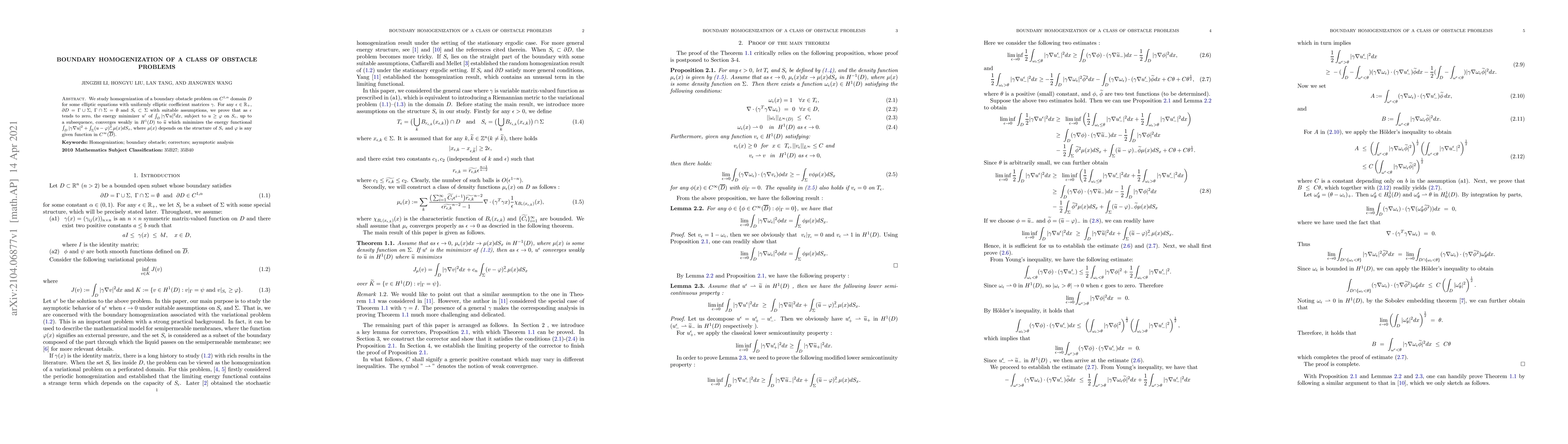 We study homogenization of a boundary obstacle problem on $ C^{1,\alpha} $ domain $D$ for some elliptic equations with uniformly elliptic coefficient matrices $\gamma$. For any $ \epsilon\in\mathbb{R}_+$, $\partial D=\Gamma \cup \Sigma$, $\Gamma \cap \Sigma=\emptyset $ and $ S_{\epsilon}\subset \Sigma $ with suitable assumptions,\ we prove that as $\epsilon$ tends to zero, the energy minimizer $ u^{\epsilon} $ of $ \int_{D} |\gamma\nabla u|^{2} dx $, subject to $ u\geq \varphi $ on $ S_{\varepsilon} $, up to a subsequence, converges weakly in $ H^{1}(D) $ to $ \widetilde{u} $ which minimizes the energy functional $\int_{D}|\gamma\nabla u|^{2}+\int_{\Sigma} (u-\varphi)^{2}_{-}\mu(x) dS_{x}$, where $\mu(x)$ depends on the structure of $S_{\epsilon}$ and $ \varphi $ is any given function in $C^{\infty}(\overline{D})$.
