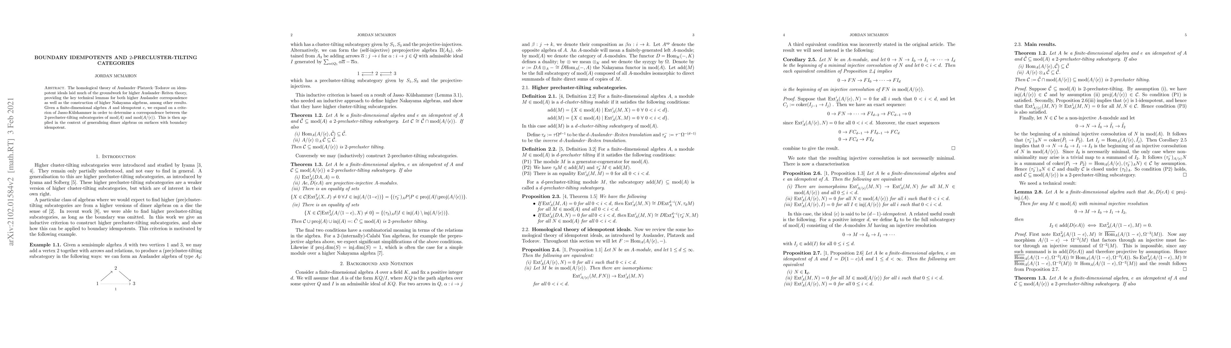 The homological theory of Auslander-Platzeck-Todorov on idempotent ideals laid much of the groundwork for higher Auslander-Reiten theory, providing the key technical lemmas for both higher Auslander correspondence as well as the construction of higher Nakayama algebras, among other results. Given a finite-dimensional algebra $A$ and idempotent $e$, we expand on a criterion of Jasso-K\"ulshammer in order to determine a correspondence between the $2$-precluster-tilting subcategories of $\mathrm{mod}(A)$ and $\mathrm{mod}(A/\langle e\rangle)$. This is then applied in the context of generalising dimer algebras on surfaces with boundary idempotent.