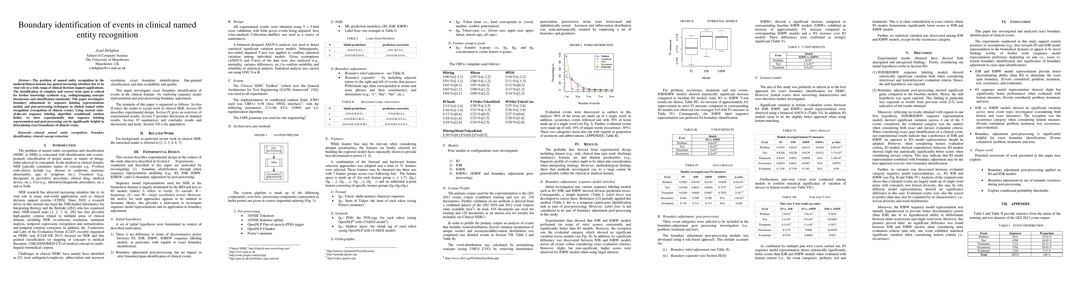 This paper explores advanced sequence labeling techniques and post-processing methods to improve the accuracy of identifying boundaries for clinical named entities, demonstrating significant improvements using conditional random fields in clinical event recognition.