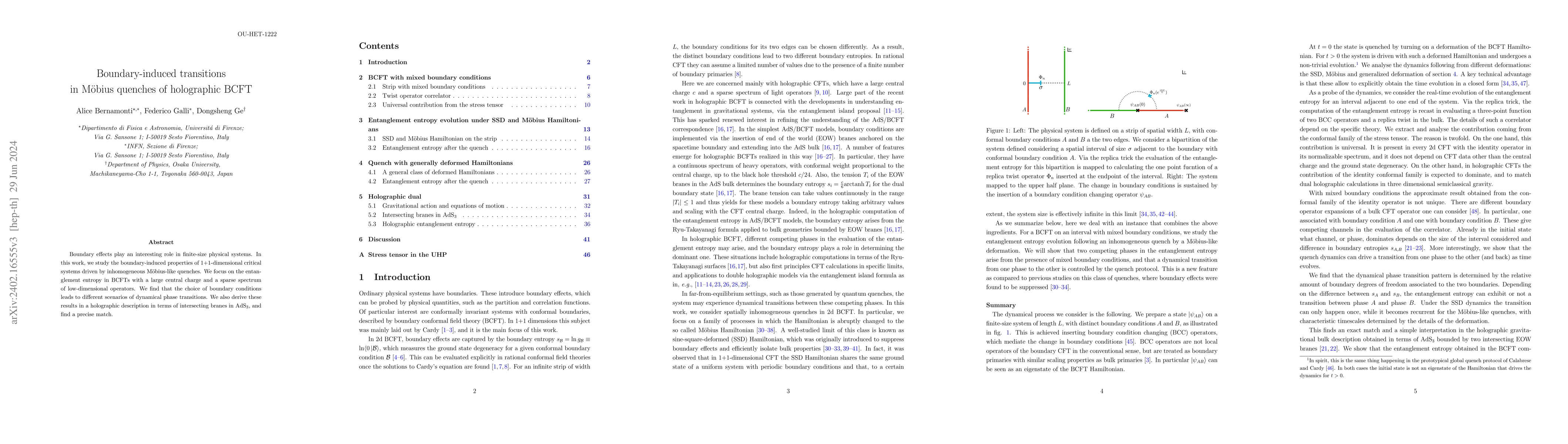 This paper investigates boundary-induced transitions in 1+1-dimensional critical systems undergoing inhomogeneous M\"obius-like quenches, particularly focusing on entanglement entropy in holographic boundary conformal field theories (BCFTs). It finds that different boundary conditions result in varied dynamical phase transition scenarios, which are precisely matched in a holographic framework involving intersecting branes in AdS$_3$.