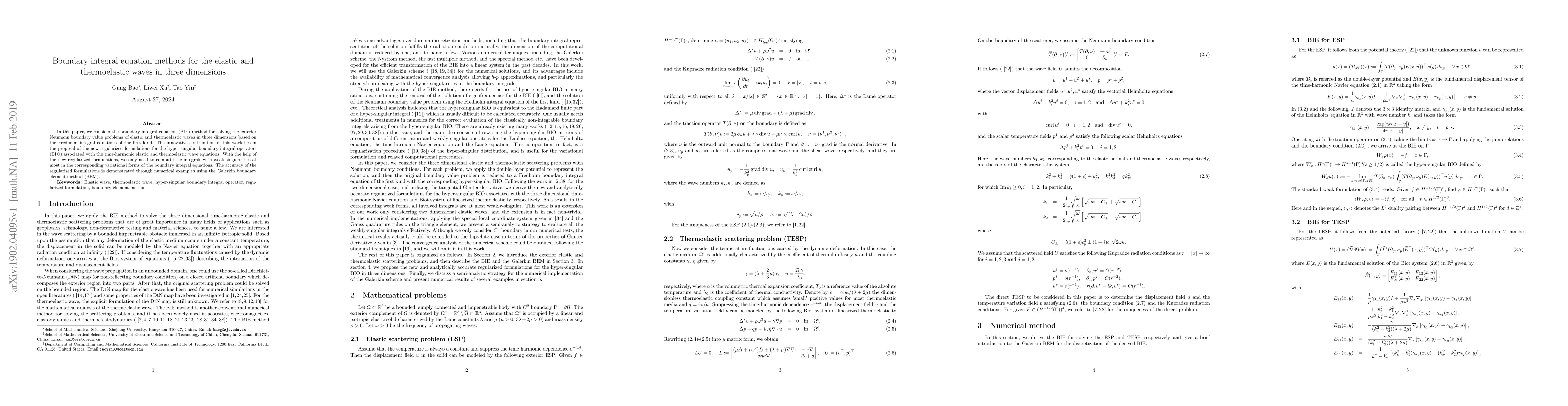 In this paper, we consider the boundary integral equation (BIE) method for solving the exterior Neumann boundary value problems of elastic and thermoelastic waves in three dimensions based on the Fredholm integral equations of the first kind. The innovative contribution of this work lies in the proposal of the new regularized formulations for the hyper-singular boundary integral operators (BIO) associated with the time-harmonic elastic and thermoelastic wave equations. With the help of the new regularized formulations, we only need to compute the integrals with weak singularities at most in the corresponding variational forms of the boundary integral equations. The accuracy of the regularized formulations is demonstrated through numerical examples using the Galerkin boundary element method (BEM).