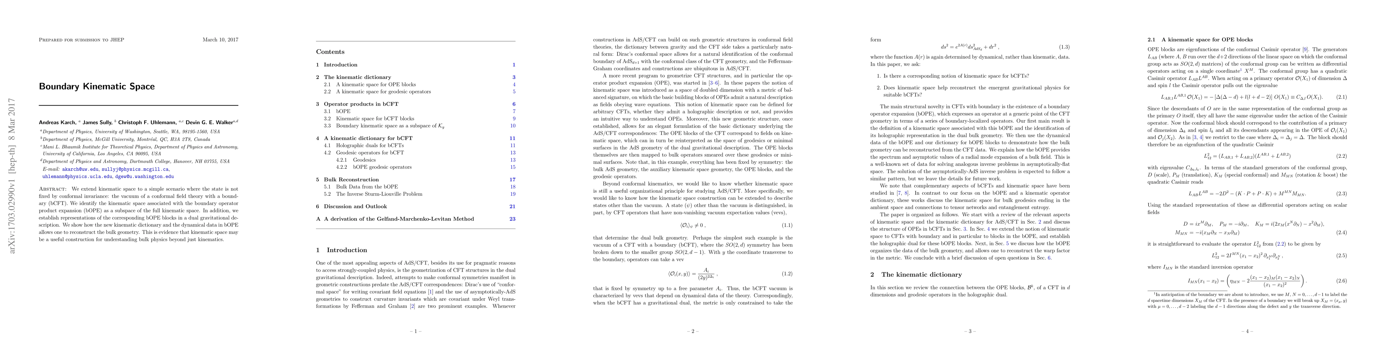 We extend kinematic space to a simple scenario where the state is not fixed by conformal invariance: the vacuum of a conformal field theory with a boundary (bCFT). We identify the kinematic space associated with the boundary operator product expansion (bOPE) as a subspace of the full kinematic space. In addition, we establish representations of the corresponding bOPE blocks in a dual gravitational description. We show how the new kinematic dictionary and the dynamical data in bOPE allows one to reconstruct the bulk geometry. This is evidence that kinematic space may be a useful construction for understanding bulk physics beyond just kinematics.