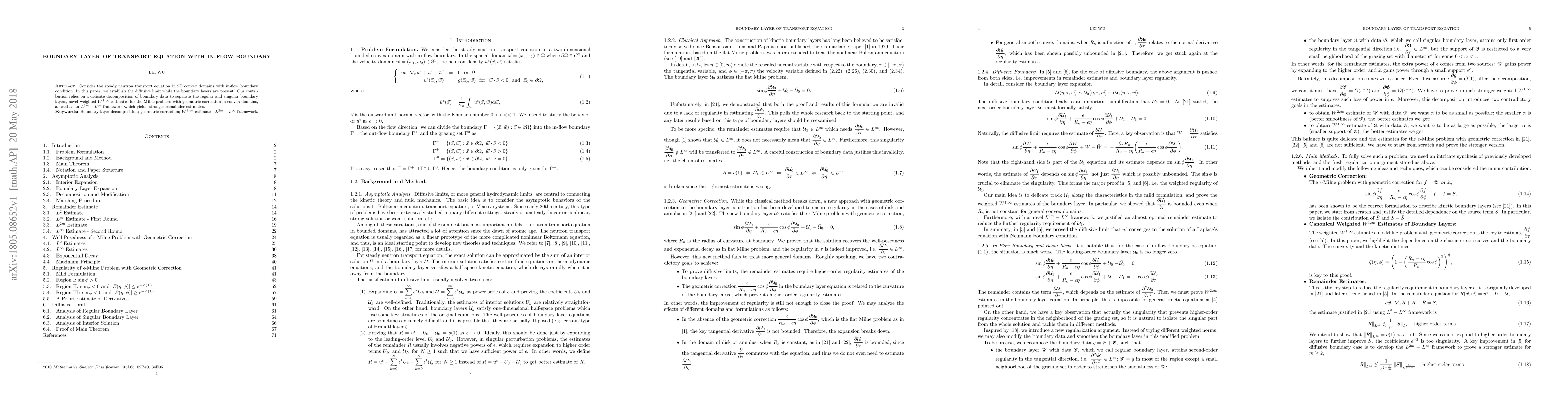 Consider the steady neutron transport equation in 2D convex domains with in-flow boundary condition. In this paper, we establish the diffusive limit while the boundary layers are present. Our contribution relies on a delicate decomposition of boundary data to separate the regular and singular boundary layers, novel weighted $W^{1,\infty}$ estimates for the Milne problem with geometric correction in convex domains, as well as an $L^{2m}-L^{\infty}$ framework which yields stronger remainder estimates.