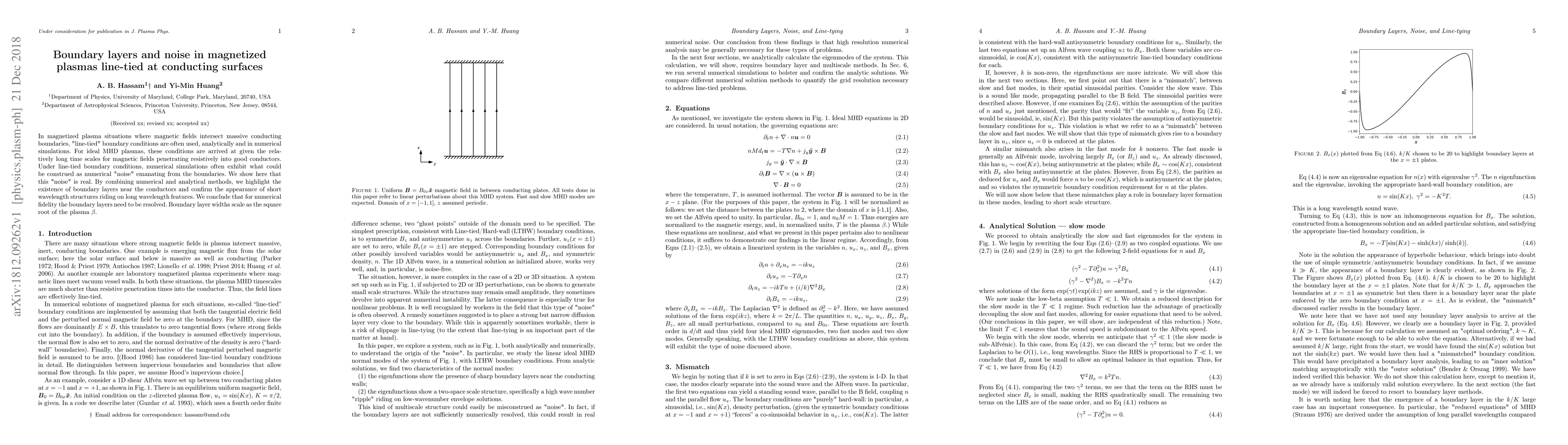 This paper investigates boundary layers and noise in magnetized plasmas tied to conducting surfaces, revealing that the "noise" observed in simulations is genuine. It combines analytical and numerical methods to demonstrate the presence of boundary layers and short wavelength structures, emphasizing the necessity of resolving these layers for numerical accuracy.
