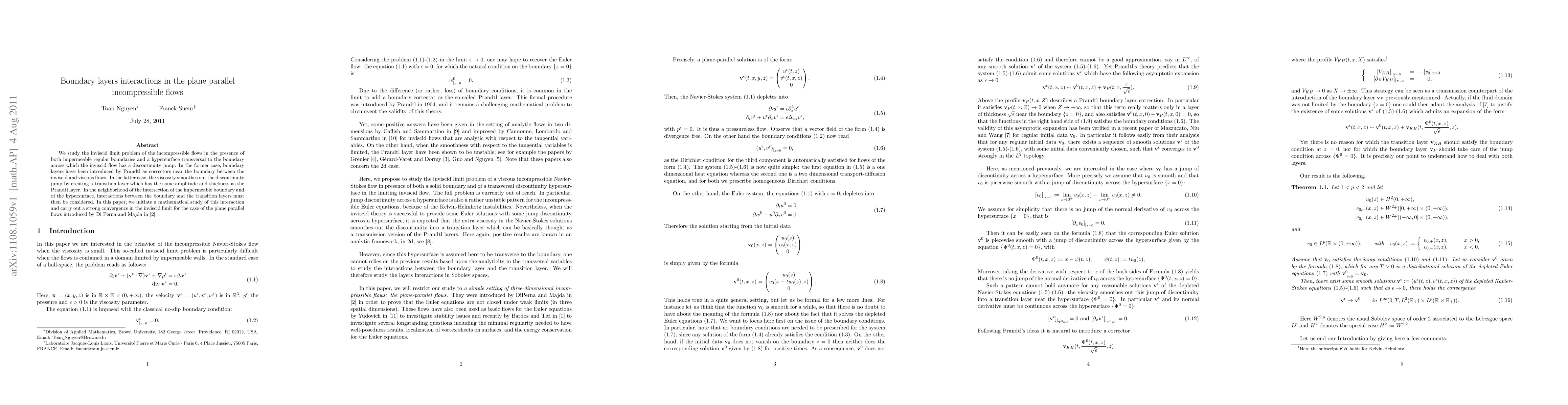 We study the inviscid limit problem of the incompressible flows in the presence of both impermeable regular boundaries and a hypersurface transversal to the boundary across which the inviscid flow has a discontinuity jump. In the former case, boundary layers have been introduced by Prandtl as correctors near the boundary between the inviscid and viscous flows. In the latter case, the viscosity smoothes out the discontinuity jump by creating a transition layer which has the same amplitude and thickness as the Prandtl layer. In the neighborhood of the intersection of the impermeable boundary and of the hypersurface, interactions between the boundary and the transition layers must then be considered. In this paper, we initiate a mathematical study of this interaction and carry out a strong convergence in the inviscid limit for the case of the plane parallel flows introduced by Di Perna and Majda in \cite{DM}.