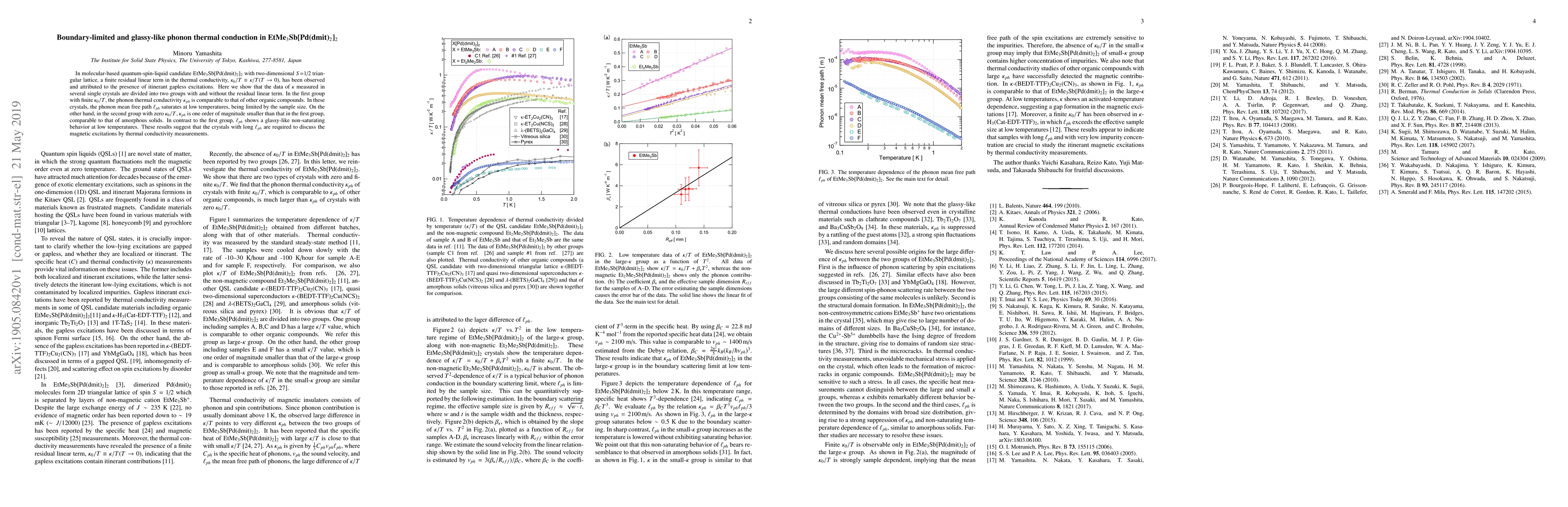 This paper investigates the thermal conductivity of the molecular-based quantum-spin-liquid candidate EtMe$_3$Sb[Pd(dmit)$_2$]$_2$, revealing two distinct groups based on residual linear thermal conductivity. Crystals with finite residual thermal conductivity exhibit phonon thermal conduction comparable to other organic compounds, with phonon mean free paths saturating at low temperatures due to boundary limitations. In contrast, crystals with zero residual thermal conductivity show phonon thermal conductivity akin to amorphous solids, with non-saturating, glassy-like phonon mean free paths at low temperatures.