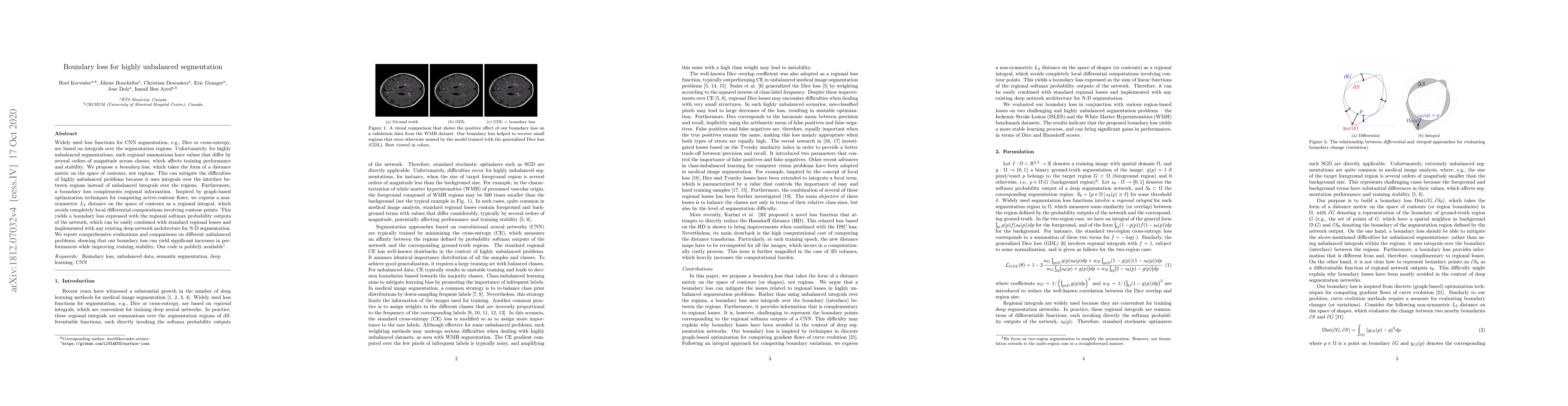A new loss function, boundary loss, is proposed to address challenges in highly unbalanced segmentation tasks, improving performance and stability by focusing on the interface between regions rather than regional integrals.