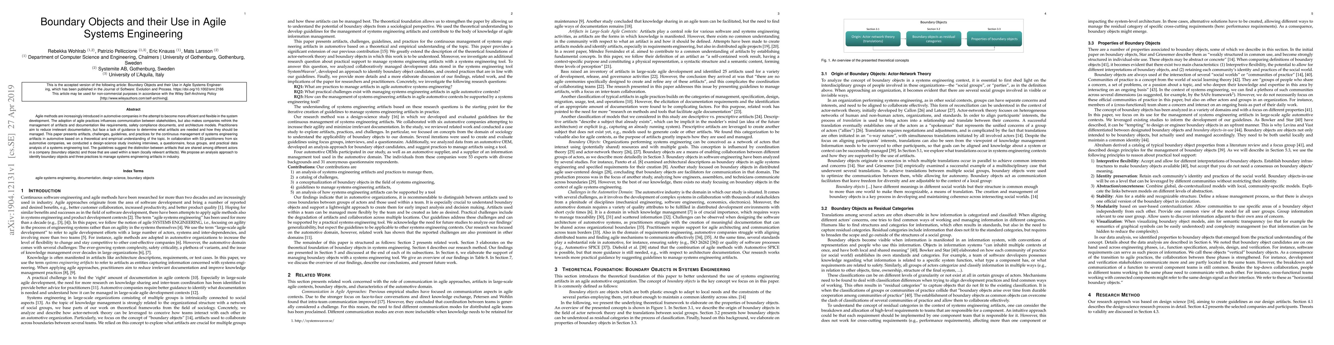 Agile methods are increasingly introduced in automotive companies in the attempt to become more efficient and flexible in the system development. The adoption of agile practices influences communication between stakeholders, but also makes companies rethink the management of artifacts and documentation like requirements, safety compliance documents, and architecture models. Practitioners aim to reduce irrelevant documentation, but face a lack of guidance to determine what artifacts are needed and how they should be managed. This paper presents artifacts, challenges, guidelines, and practices for the continuous management of systems engineering artifacts in automotive based on a theoretical and empirical understanding of the topic. In collaboration with 53 practitioners from six automotive companies, we conducted a design-science study involving interviews, a questionnaire, focus groups, and practical data analysis of a systems engineering tool. The guidelines suggest the distinction between artifacts that are shared among different actors in a company (boundary objects) and those that are used within a team (locally relevant artifacts). We propose an analysis approach to identify boundary objects and three practices to manage systems engineering artifacts in industry.
