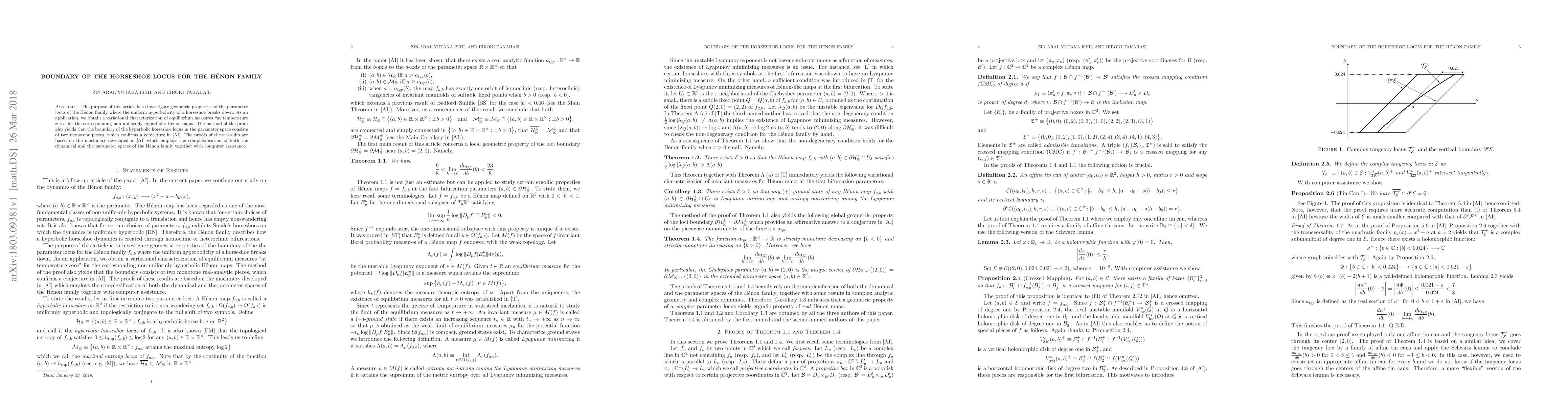 This paper examines the geometric properties of the parameter locus for the Hénon family where uniform hyperbolicity of a horseshoe breaks down, confirming a conjecture about the boundary consisting of two monotone pieces. It also provides a variational characterization of equilibrium measures for non-uniformly hyperbolic Hénon maps, using complexification and computer assistance.
