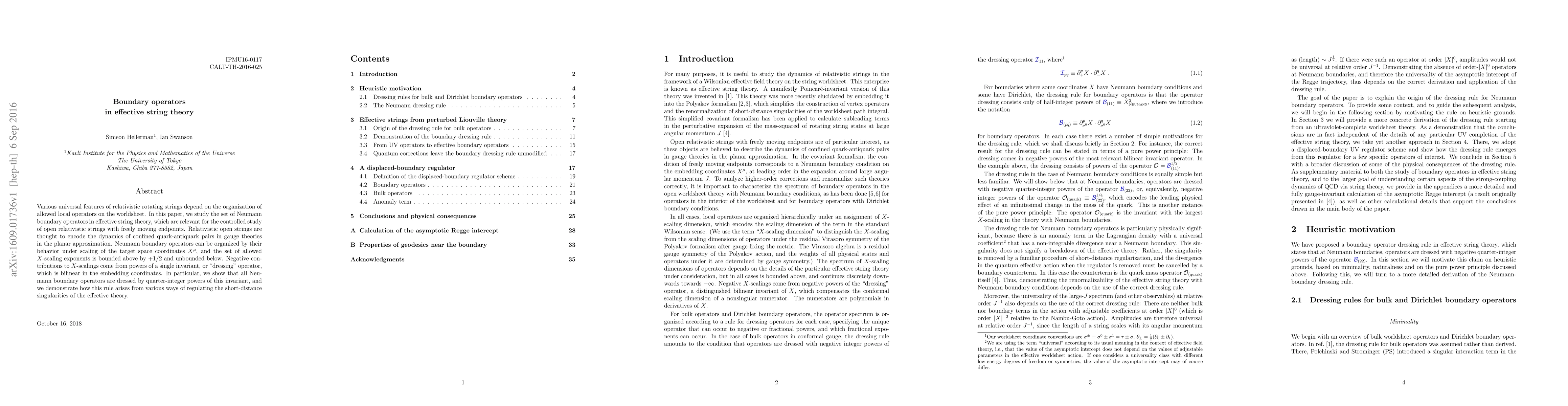 Various universal features of relativistic rotating strings depend on the organization of allowed local operators on the worldsheet. In this paper, we study the set of Neumann boundary operators in effective string theory, which are relevant for the controlled study of open relativistic strings with freely moving endpoints. Relativistic open strings are thought to encode the dynamics of confined quark-antiquark pairs in gauge theories in the planar approximation. Neumann boundary operators can be organized by their behavior under scaling of the target space coordinates X, and the set of allowed X-scaling exponents is bounded above by +1/2 and unbounded below. Negative contributions to X-scalings come from powers of a single invariant, or "dressing" operator, which is bilinear in the embedding coordinates. In particular, we show that all Neumann boundary operators are dressed by quarter-integer powers of this invariant, and we demonstrate how this rule arises from various ways of regulating the short-distance singularities of the effective theory.