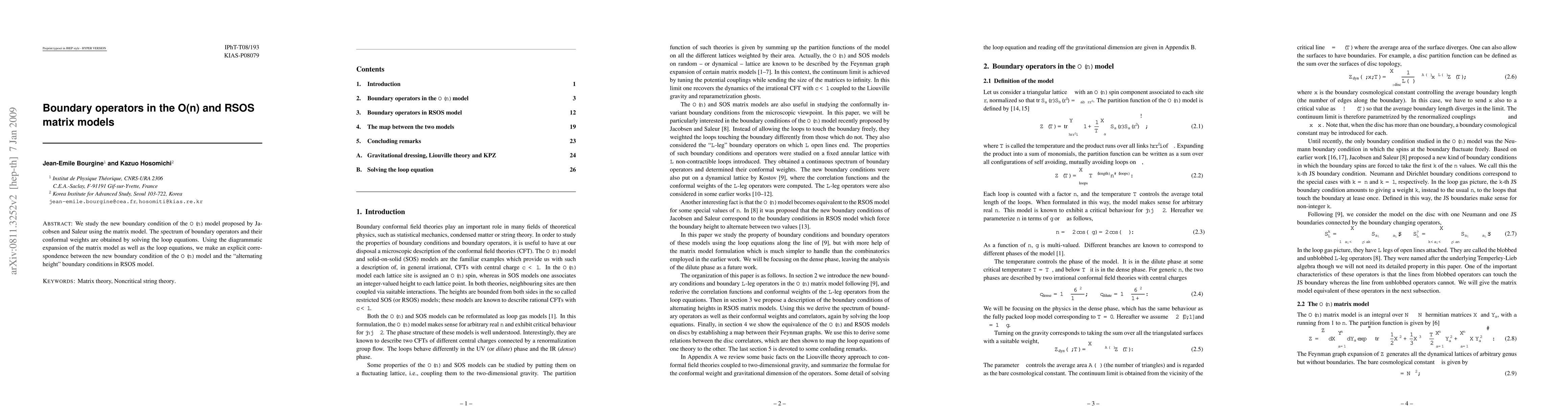 Researchers studied a new boundary condition in the O(n) model using matrix models, establishing an explicit correspondence with the RSOS model's alternating height boundary conditions. They solved loop equations to obtain spectra and conformal weights of boundary operators.