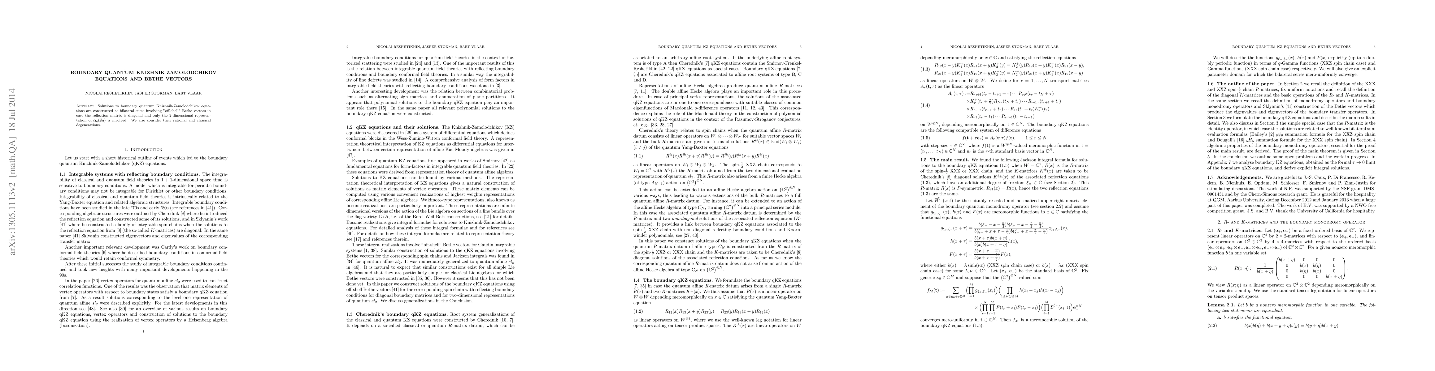 This paper constructs solutions to boundary quantum Knizhnik-Zamolodchikov equations using bilateral sums of "off-shell" Bethe vectors when the reflection matrix is diagonal and involves the 2-dimensional representation of $U_q(\hat{\frak{sl}(2)})$. It also explores their rational and classical degenerations.