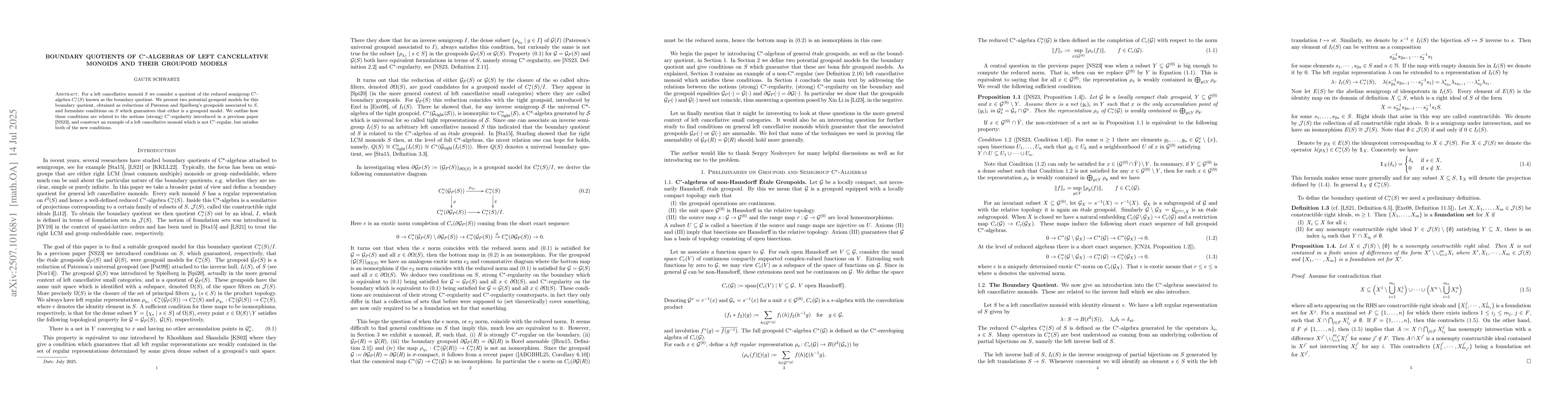 For a left cancellative monoid $S$ we consider a quotient of the reduced semigroup C$^*$-algebra $C_r^*(S)$ known as the boundary quotient. We present two potential groupoid models for this boundary quotient, obtained as reductions of Paterson and Spielberg's groupoids associated to $S$, and formulate conditions on $S$ which guarantees that either is a groupoid model. We outline how these conditions are related to the notions (strong) C$^*$-regularity introduced in a previous paper, and construct an example of a left cancellative monoid which is not C$^*$-regular, but satisfies both of the new conditions.