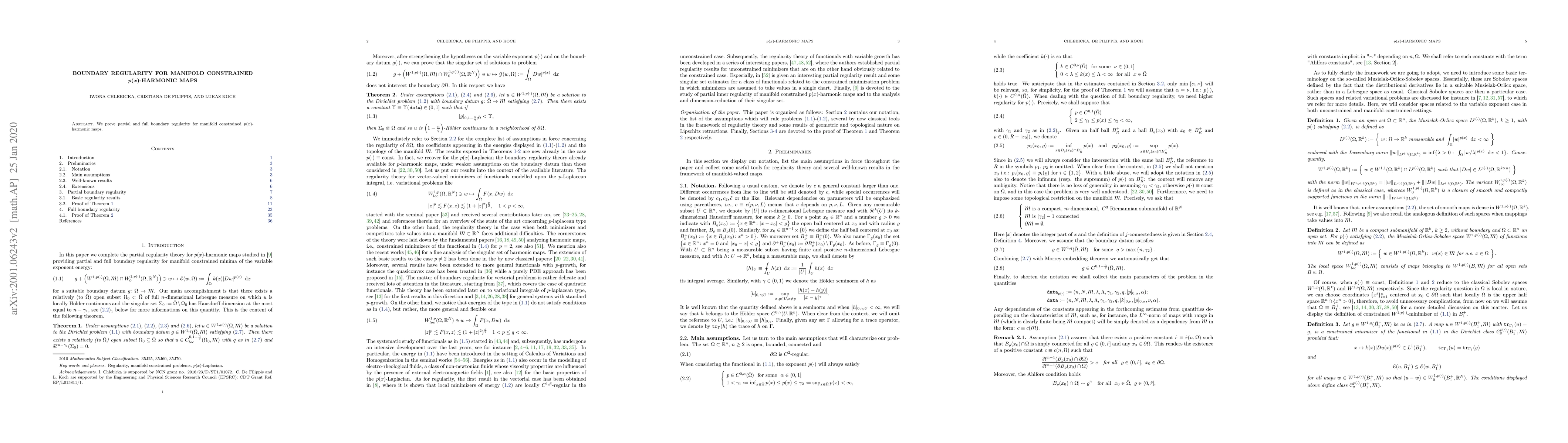 This paper establishes partial and full boundary regularity for $p(x)$-harmonic maps constrained by a manifold, providing insights into the regularity properties of these complex mappings. The results contribute to the understanding of geometric partial differential equations.