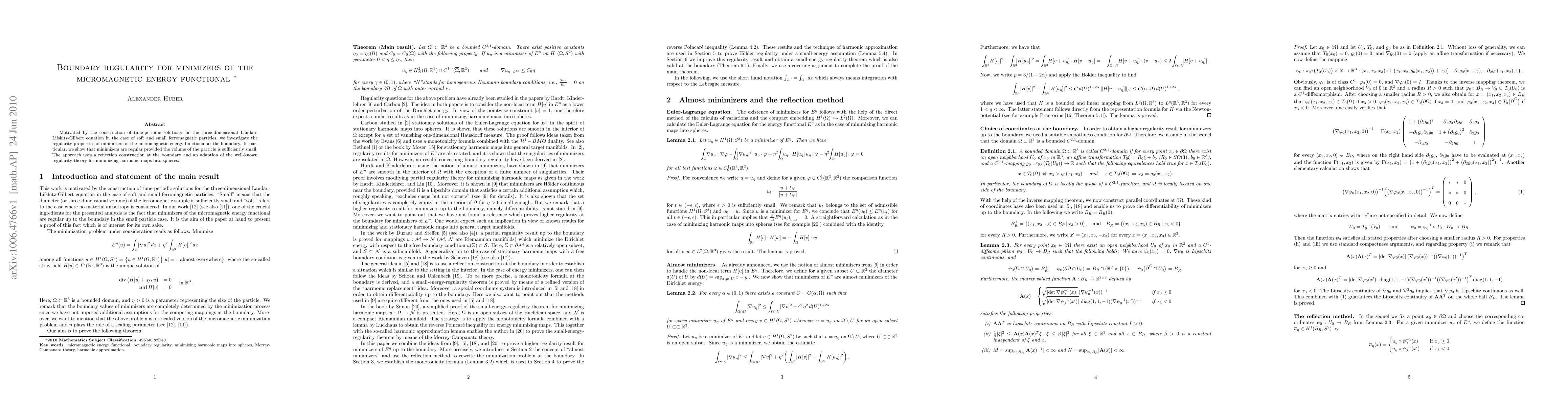 This paper investigates the regularity of minimizers of the micromagnetic energy functional at the boundary, demonstrating that they are regular when the volume of the ferromagnetic particle is sufficiently small. The study employs a reflection construction and adapts the regularity theory for minimizing harmonic maps into spheres.