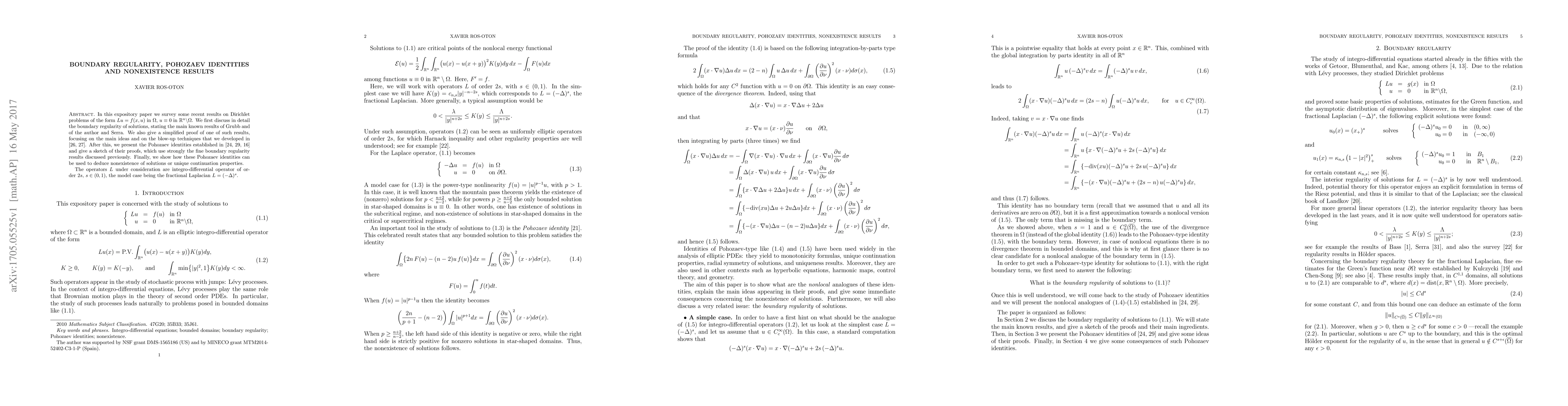 In this expository paper we survey some recent results on Dirichlet problems of the form $Lu=f(x,u)$ in $\Omega$, $u\equiv0$ in $\mathbb R^n\backslash\Omega$. We first discuss in detail the boundary regularity of solutions, stating the main known results of Grubb and of the author and Serra. We also give a simplified proof of one of such results, focusing on the main ideas and on the blow-up techniques that we developed in \cite{RS-K,RS-stable}. After this, we present the Pohozaev identities established in \cite{RS-Poh,RSV,Grubb-Poh} and give a sketch of their proofs, which use strongly the fine boundary regularity results discussed previously. Finally, we show how these Pohozaev identities can be used to deduce nonexistence of solutions or unique continuation properties. The operators $L$ under consideration are integro-differential operator of order $2s$, $s\in(0,1)$, the model case being the fractional Laplacian $L=(-\Delta)^s$.