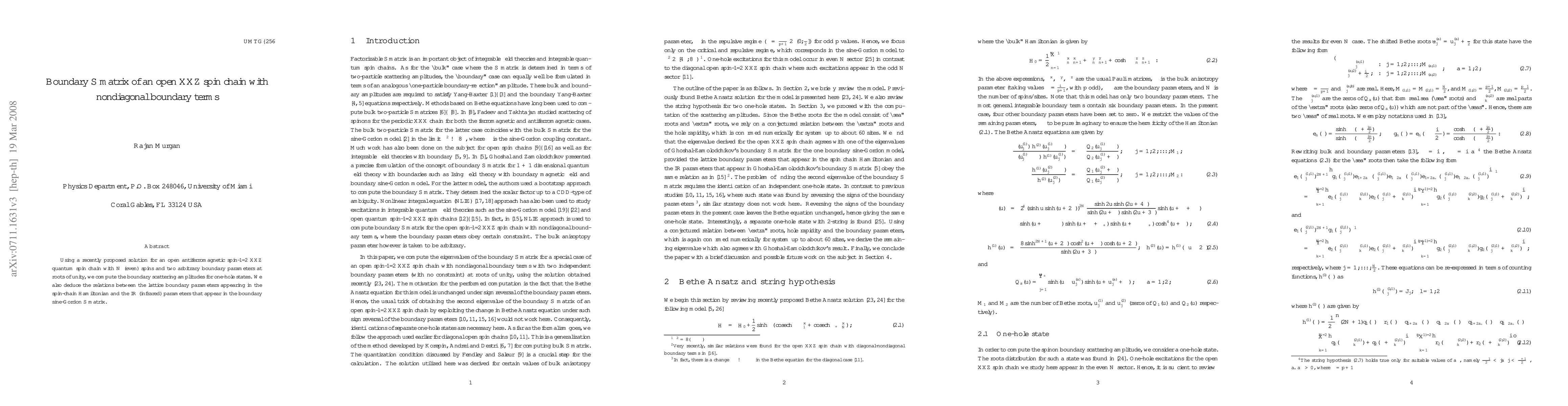 This paper computes the boundary scattering amplitudes for one-hole states in an open XXZ spin chain with nondiagonal boundary terms, using a novel solution method. It also establishes connections between the lattice boundary parameters and the infrared parameters in the boundary sine-Gordon S matrix.