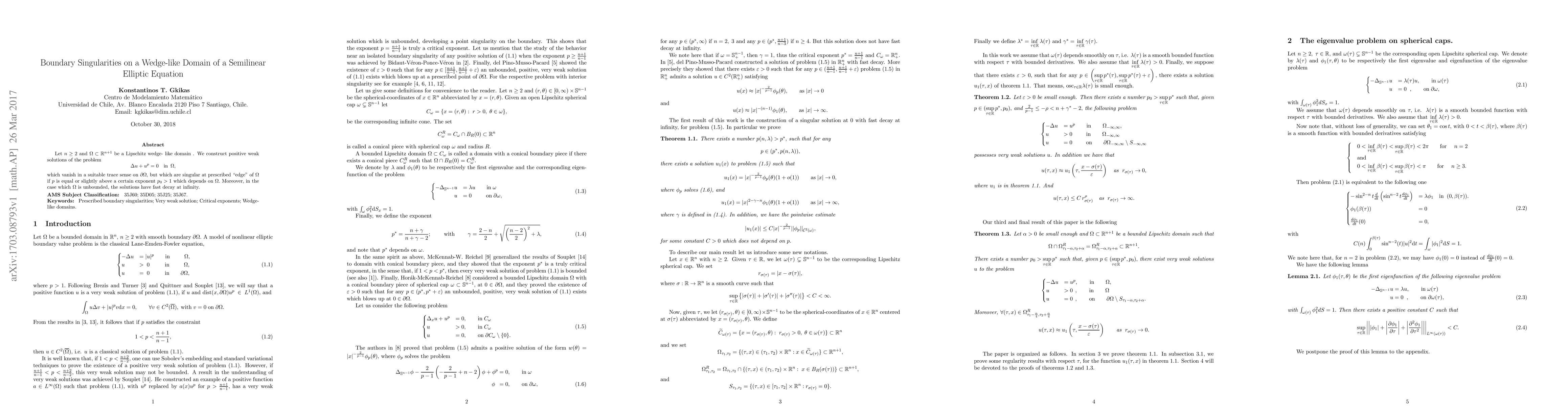 Let $n\geq2$ and $ \Omega\subset \mathbb{R}^{n+1}$ be a Lipschitz wedge- like domain . We construct positive weak solutions of the problem $$\Delta u + u^p = 0 \quad\hbox{in}\, \Omega,$$ which vanish in a suitable trace sense on $\partial\Omega,$ but which are singular at prescribed "edge" of $\Omega$ if $p$ is equal or slightly above a certain exponent $p_0>1$ which depends on $\Omega.$ Moreover, in the case which $\Omega$ is unbounded, the solutions have fast decay at infinity.