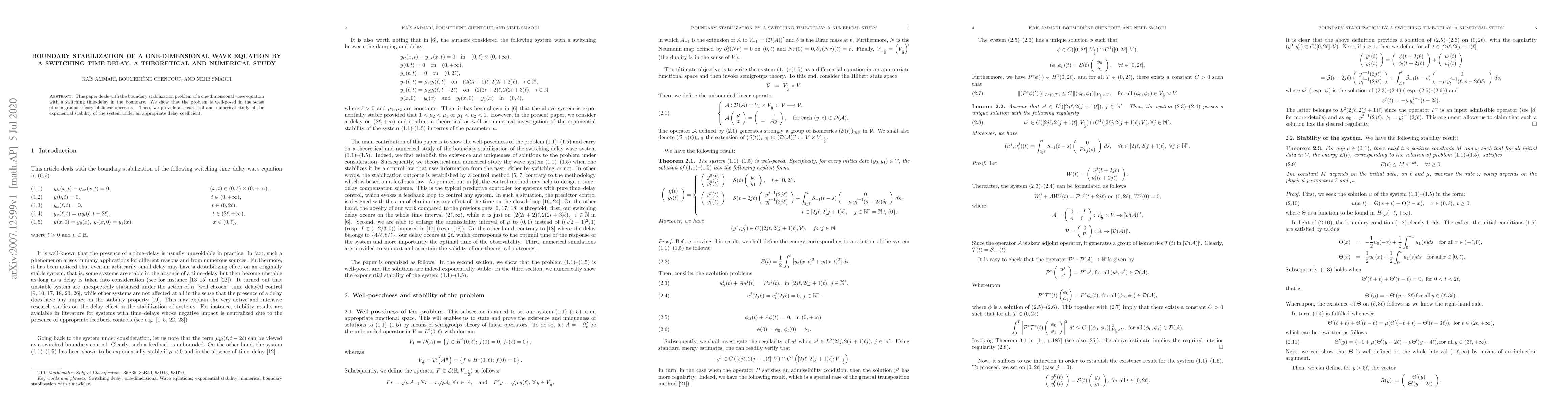 This paper investigates the boundary stabilization of a one-dimensional wave equation with a switching time-delay, demonstrating well-posedness via semigroup theory, and explores both theoretical and numerical aspects for achieving exponential stability under suitable delay conditions.