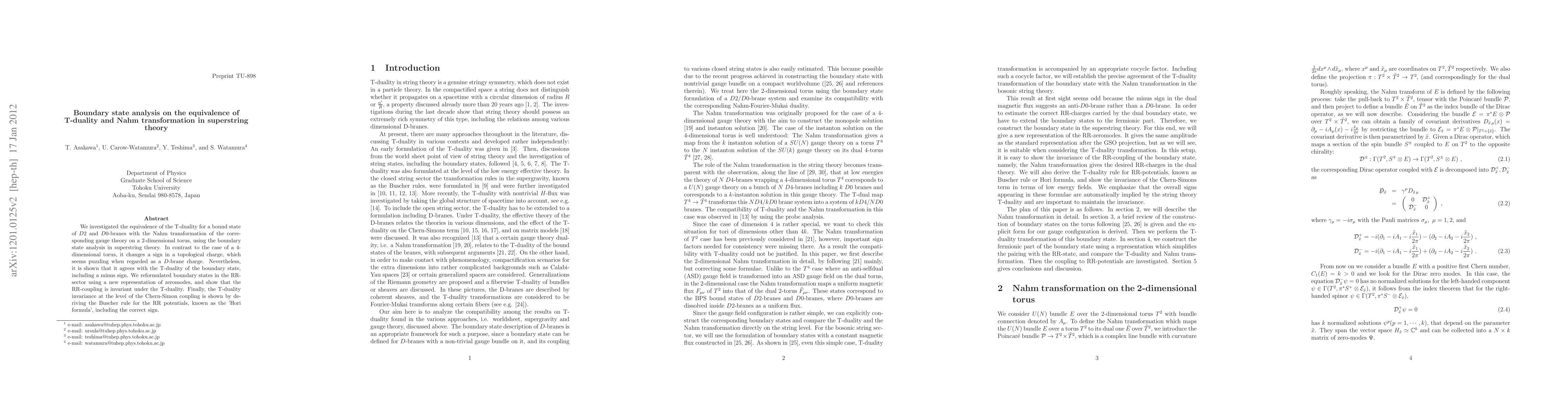 We investigated the equivalence of the T-duality for a bound state of D2 and D0-branes with the Nahm transformation of the corresponding gauge theory on a 2-dimensional torus, using the boundary state analysis in superstring theory. In contrast to the case of a 4-dimensional torus, it changes a sign in a topological charge, which seems puzzling when regarded as a D-brane charge. Nevertheless, it is shown that it agrees with the T-duality of the boundary state, including a minus sign. We reformulated boundary states in the RR-sector using a new representation of zeromodes, and show that the RR-coupling is invariant under the T-duality. Finally, the T-duality invariance at the level of the Chern-Simon coupling is shown by deriving the Buscher rule for the RR-potentials, known as the 'Hori formula', including the correct sign.