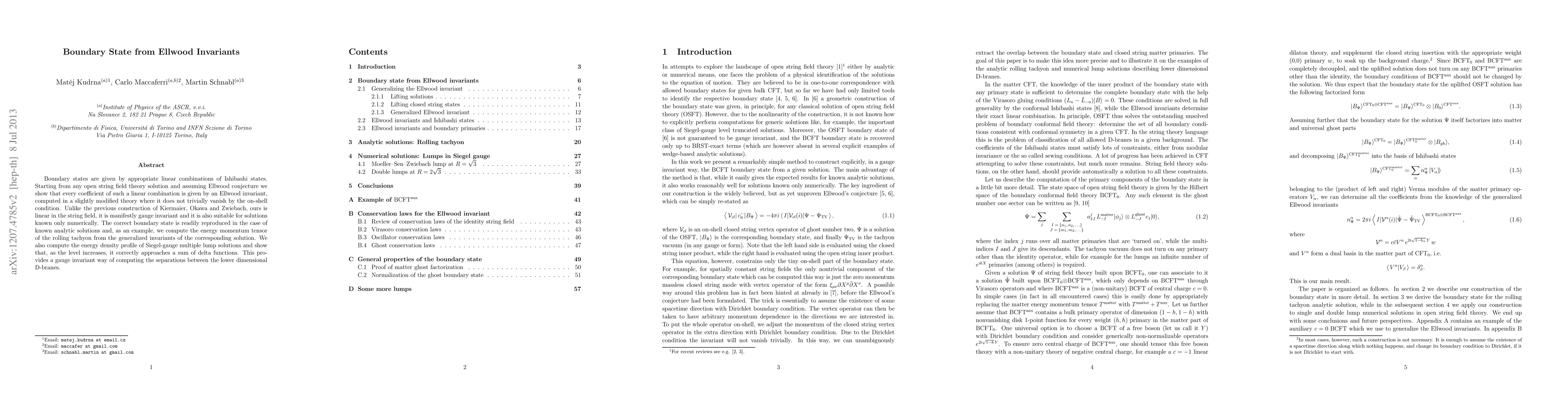 Boundary states are given by appropriate linear combinations of Ishibashi states. Starting from any OSFT solution and assuming Ellwood conjecture we show that every coefficient of such a linear combination is given by an Ellwood invariant, computed in a slightly modified theory where it does not trivially vanish by the on-shell condition. Unlike the previous construction of Kiermaier, Okawa and Zwiebach, ours is linear in the string field, it is manifestly gauge invariant and it is also suitable for solutions known only numerically. The correct boundary state is readily reproduced in the case of known analytic solutions and, as an example, we compute the energy momentum tensor of the rolling tachyon from the generalized invariants of the corresponding solution. We also compute the energy density profile of Siegel-gauge multiple lump solutions and show that, as the level increases, it correctly approaches a sum of delta functions. This provides a gauge invariant way of computing the separations between the lower dimensional D-branes.