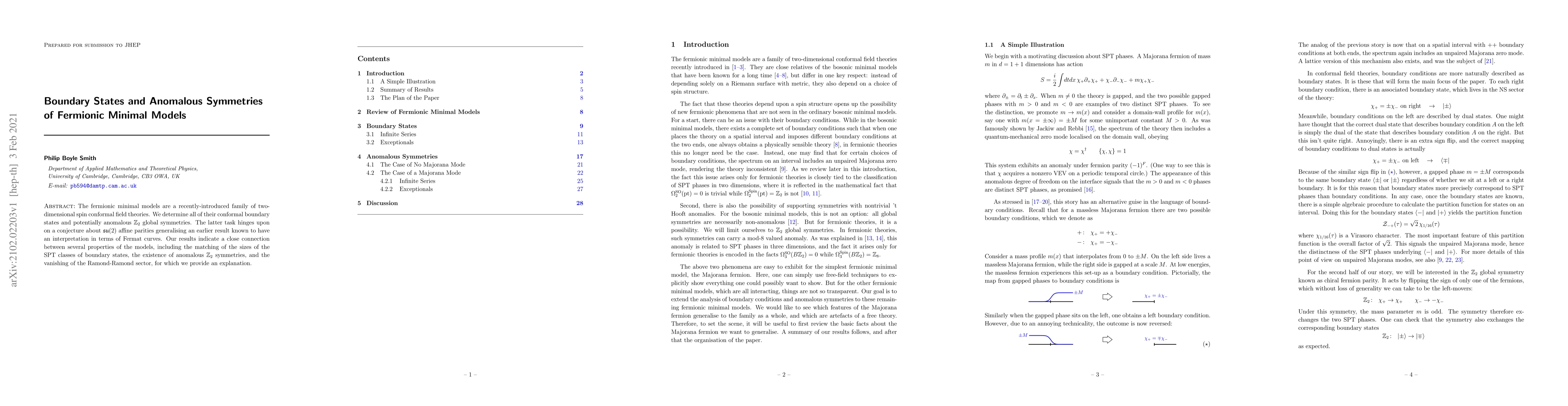 Researchers discover fermionic minimal models have matching SPT classes for boundary states, anomalous Z2 symmetries, and a vanishing Ramond-Ramond sector, hinting at connections between their properties.