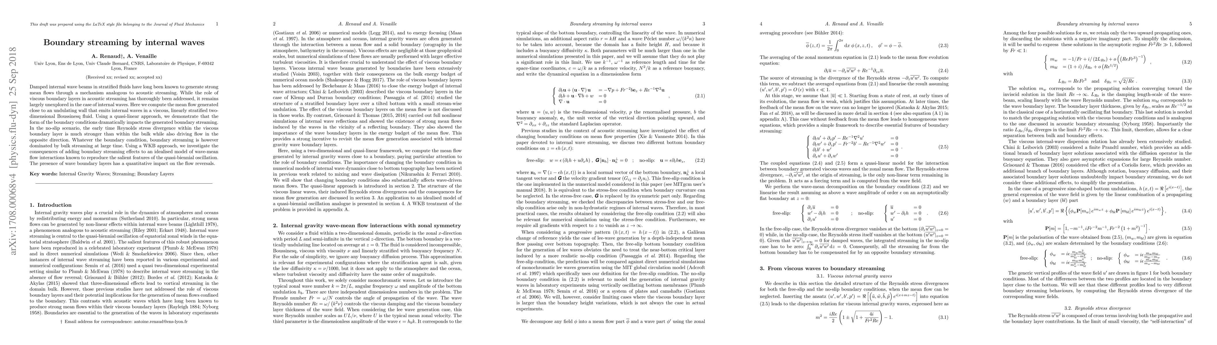 This research explores the mean flow generated by internal waves near an undulating wall in a stratified, viscous fluid. Utilizing quasi-linear and WKB approaches, the study reveals that boundary conditions significantly influence early-time streaming, with stronger divergence in no-slip scenarios. At larger times, bulk streaming dominates. The findings suggest that boundary layer effects quantitatively impact flow reversals in models of wave-mean flow interactions, like those explaining the quasi-biennial oscillation.