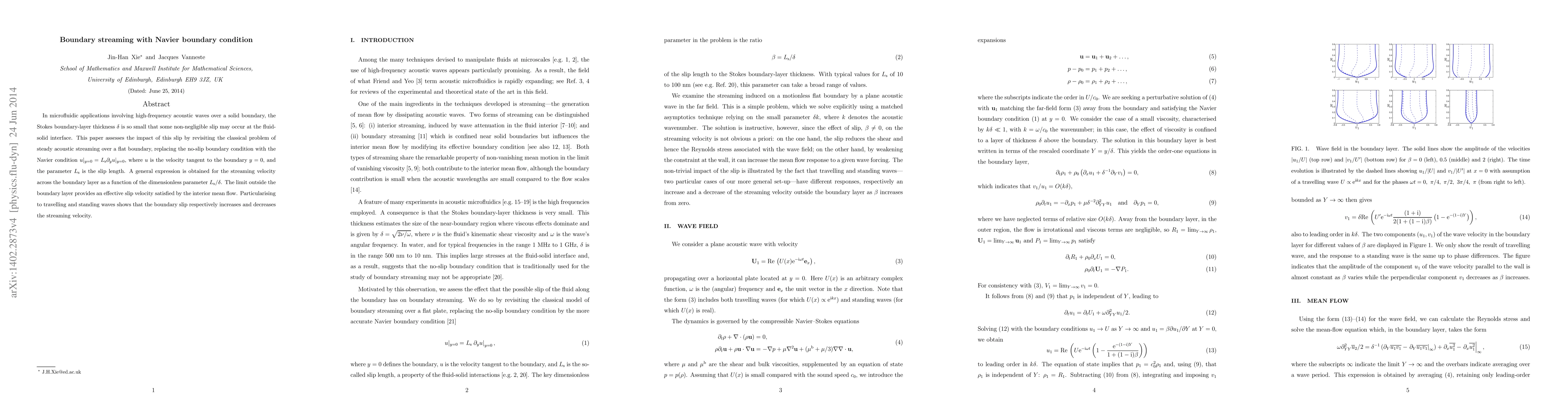 Research investigates the impact of fluid-solid interface slip on acoustic streaming over a flat boundary, finding that it increases streaming velocity for traveling waves and decreases it for standing waves.