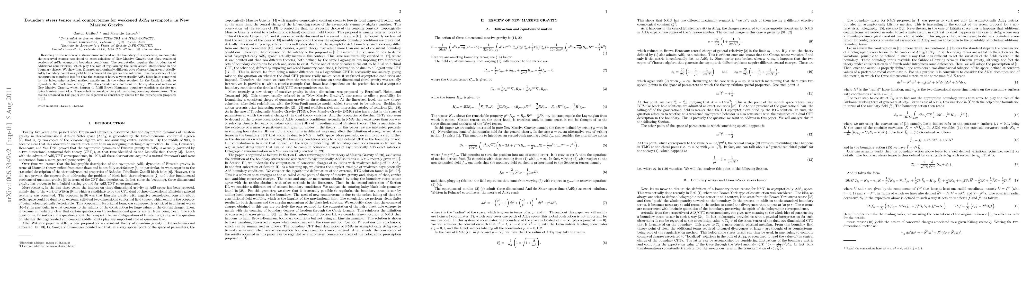 Resorting to the notion of a stress tensor induced on the boundary of a spacetime, we compute the conserved charges associated to exact solutions of New Massive Gravity that obey weakened versions of AdS_3 asymptotic boundary conditions. The computation requires the introduction of additional counterterms, which play the role of regularizing the semiclassical stress tensor in the boundary theory. We show that, if treated appropriately, different ways of prescribing asymptotically AdS_3 boundary conditions yield finite conserved charges for the solutions. The consistency of the construction manifests itself in that the charges of hairy asymptotically AdS_3 black holes computed by this holography-inspired method exactly match the values required for the Cardy formula to reproduce the black hole entropy. We also consider new solutions to the equations of motion of New Massive Gravity, which happen to fulfill Brown-Henneaux boundary conditions despite not being Einstein manifolds. These solutions are shown to yield vanishing boundary stress tensor. The results obtained in this paper can be regarded as consistency checks for the prescription proposed in arXiv:1001.3598.