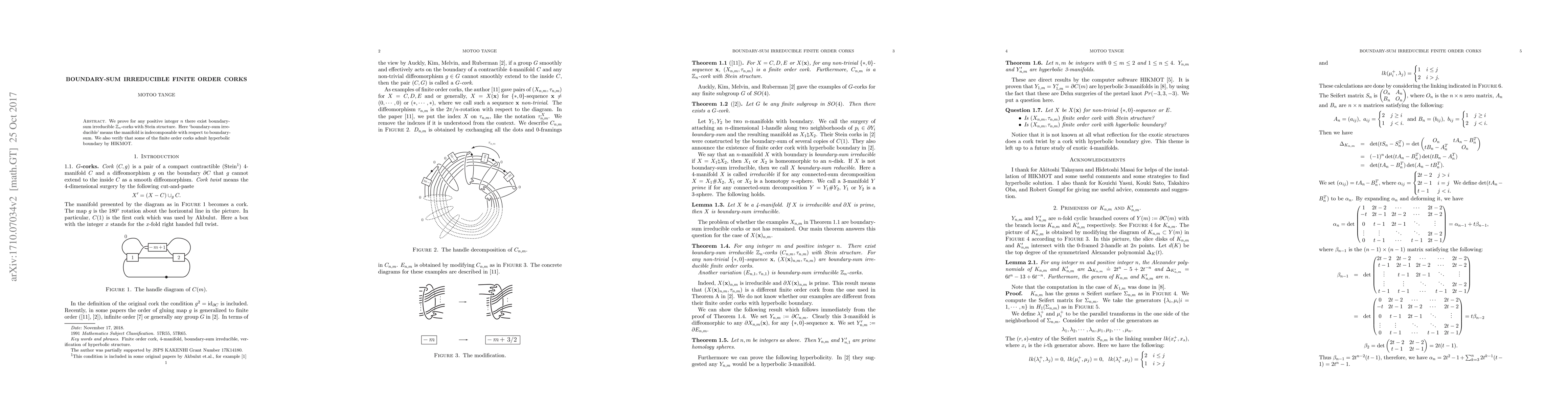 This paper demonstrates the existence of boundary-sum irreducible ${\mathbb Z}_n$-corks with a Stein structure for any positive integer $n$. It also confirms that certain finite order corks have hyperbolic boundaries as shown by HIKMOT.