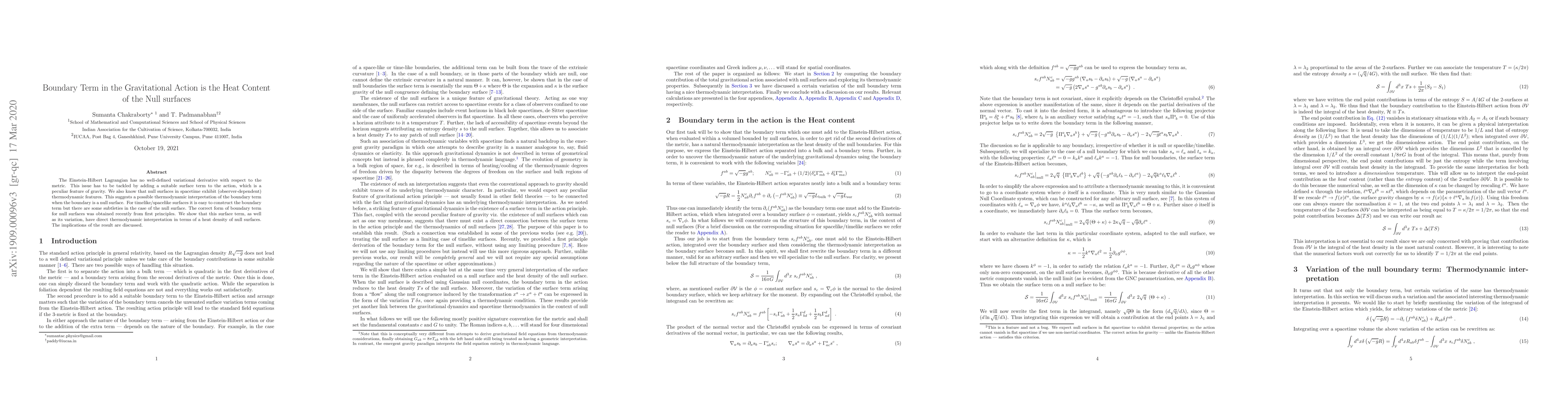 The Einstein-Hilbert Lagrangian has no well-defined variational derivative with respect to the metric. This issue has to be tackled by adding a suitable surface term to the action, which is a peculiar feature of gravity. We also know that null surfaces in spacetime exhibit (observer-dependent) thermodynamic features. This suggests a possible thermodynamic interpretation of the boundary term when the boundary is a null surface. For timelike/spacelike surfaces it is easy to construct the boundary term but there are some subtleties in the case of the null surface. The correct form of boundary term for null surfaces was obtained recently from first principles. We show that this surface term, as well as its variation, have direct thermodynamic interpretation in terms of a heat density of null surfaces. The implications of the result are discussed.