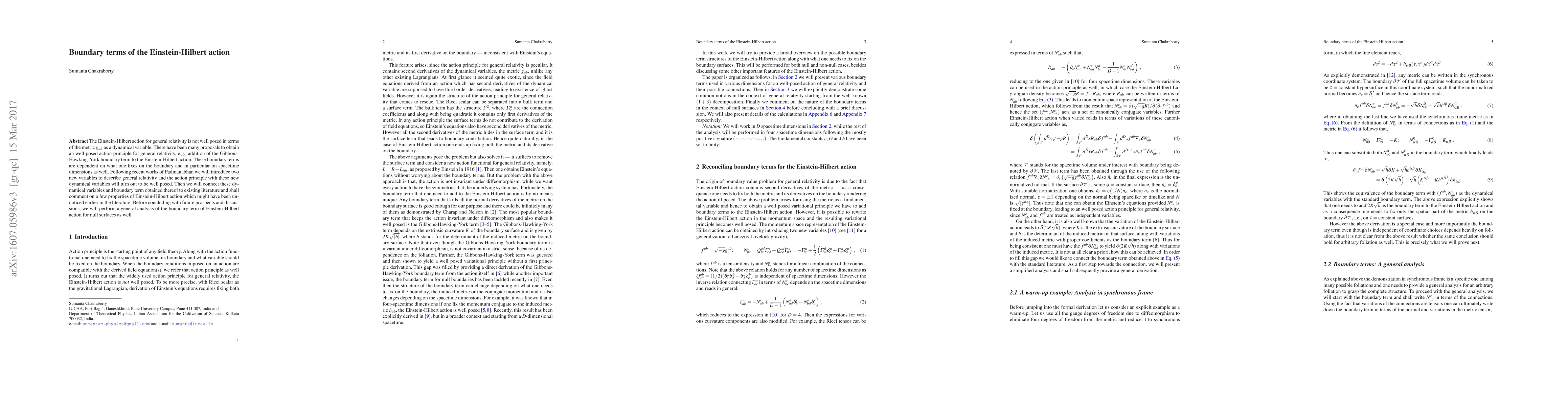 The Einstein-Hilbert action for general relativity is not well posed in terms of the metric $g_{ab}$ as a dynamical variable. There have been many proposals to obtain an well posed action principle for general relativity, e.g., addition of the Gibbons-Hawking-York boundary term to the Einstein-Hilbert action. These boundary terms are dependent on what one fixes on the boundary and in particular on spacetime dimensions as well. Following recent works of Padmanabhan we will introduce two new variables to describe general relativity and the action principle with these new dynamical variables will turn out to be well posed. Then we will connect these dynamical variables and boundary term obtained thereof to existing literature and shall comment on a few properties of Einstein-Hilbert action which might have been unnoticed earlier in the literature. Before concluding with future prospects and discussions, we will perform a general analysis of the boundary term of Einstein-Hilbert action for null surfaces as well.