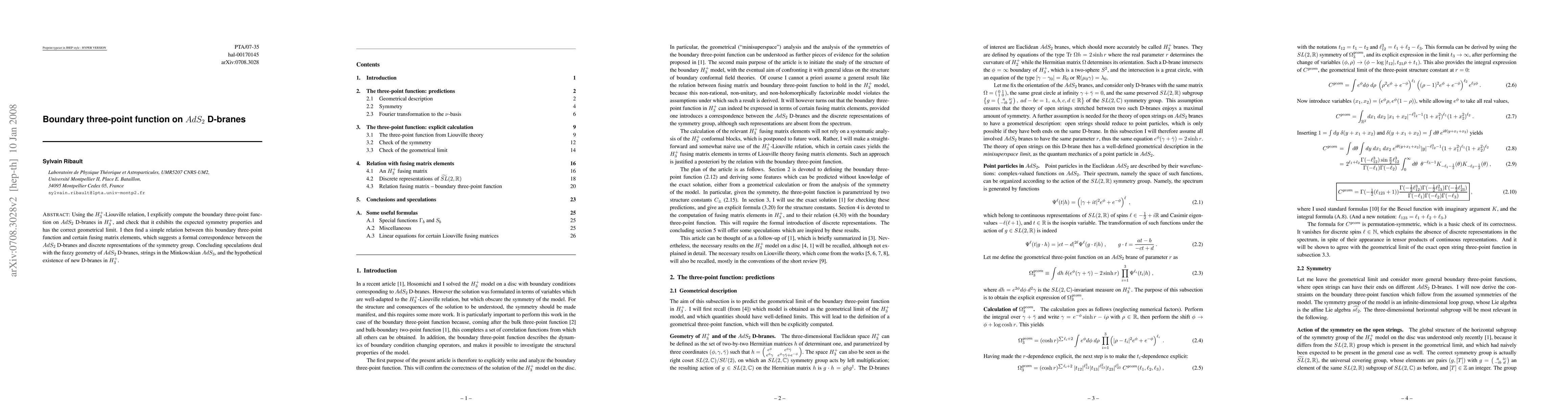 This paper computes the boundary three-point function on AdS2 D-branes using the H3+-Liouville relation, confirming its symmetry properties and geometrical limit. It also reveals a connection between this function and fusing matrix elements, hinting at a formal correspondence between AdS2 D-branes and discrete symmetry group representations.