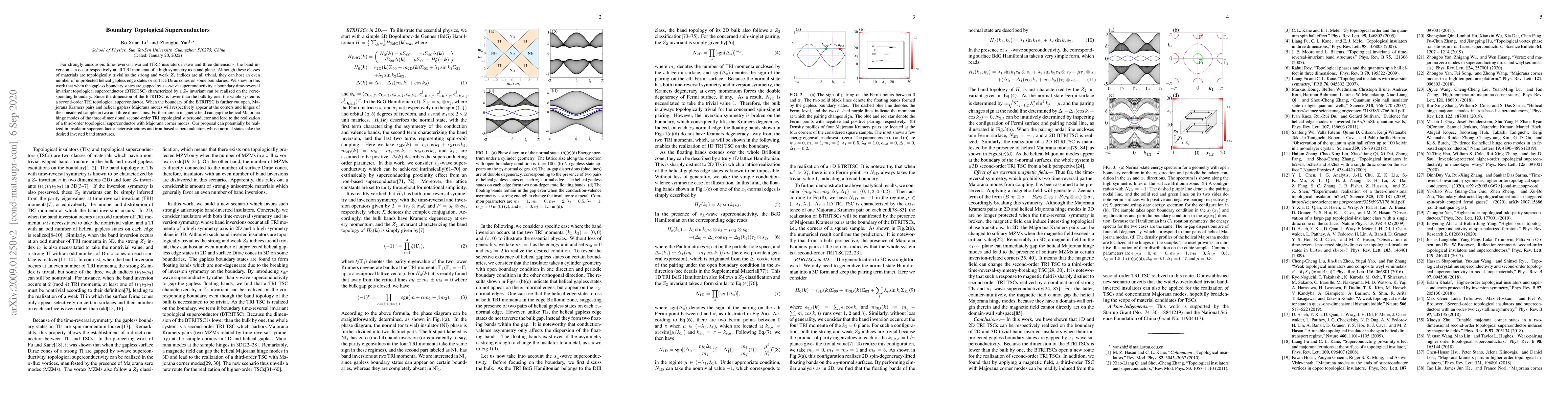 For strongly anisotropic time-reversal invariant (TRI) insulators in two and three dimensions, the band inversion can occur respectively at all TRI momenta of a high symmetry axis and plane. Although these classes of materials are topologically trivial as the strong and weak $Z_{2}$ indices are all trivial, they can host an even number of unprotected helical gapless edge states or surface Dirac cones on some boundaries. We show in this work that when the gapless boundary states are gapped by $s_{\pm}$-wave superconductivity, a boundary time-reversal invariant topological superconductor (BTRITSC) characterized by a $Z_{2}$ invariant can be realized on the corresponding boundary. Since the dimension of the BTRITSC is lower than the bulk by one, the whole system is a second-order TRI topological superconductor. When the boundary of the BTRITSC is further cut open, Majorana Kramers pairs and helical gapless Majorana modes will respectively appear at the corners and hinges of the considered sample in two and three dimensions. Furthermore, a magnetic field can gap the helical Majorana hinge modes of the three-dimensional second-order TRI topological superconductor and lead to the realization of a third-order topological superconductor with Majorana corner modes. Our proposal can potentially be realized in insulator-superconductor heterostructures and iron-based superconductors whose normal states take the desired inverted band structures.